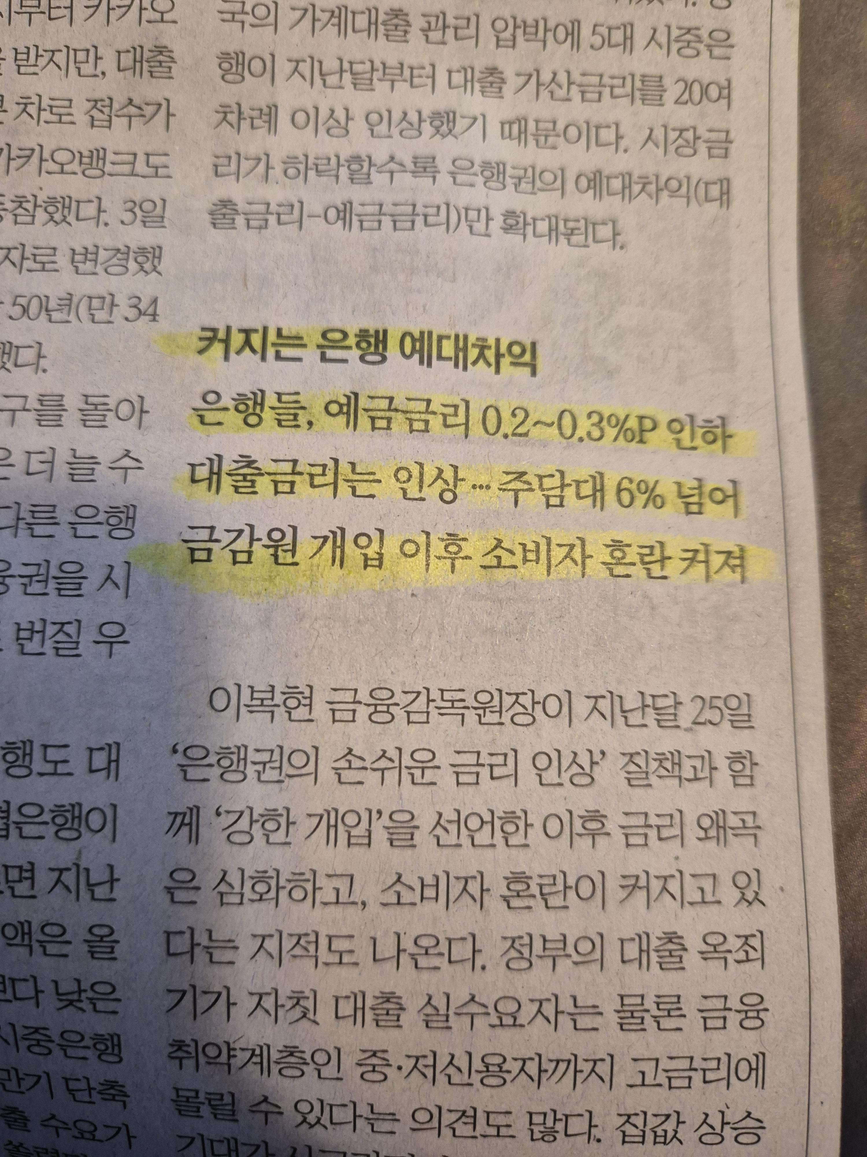 -은행은 대출금리로 돈을 더벌고, 예금 글리 정체 혹은 하락으로 예매 마진은 결국 최악의 상황이다.