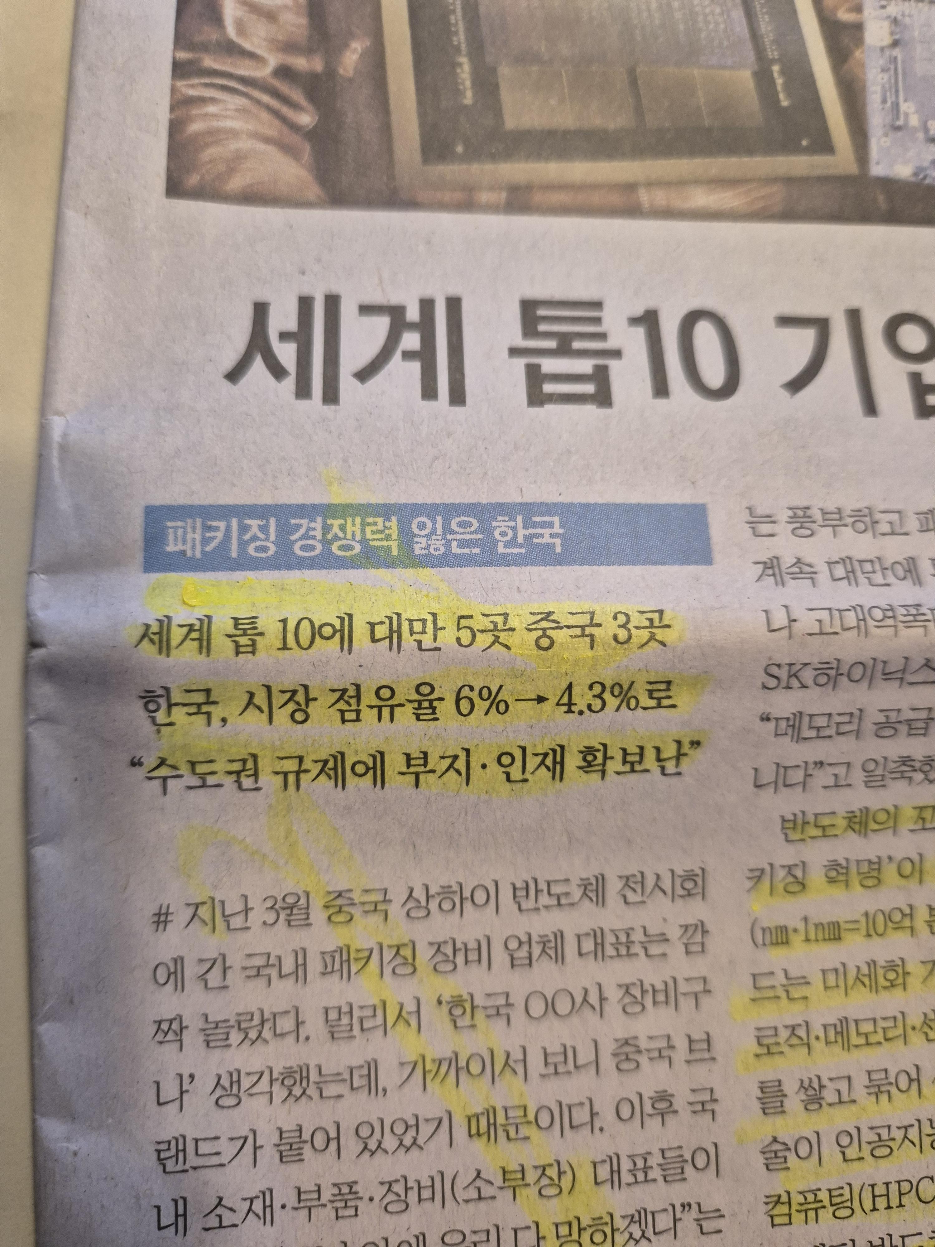 -문제는 한국의 세계 시장 점유율은 6프로에서 4.3%까지 감소하고 있으며 공장 부지 및 인재 확보를 하기 힘든 상황이라는 것. 중소 반도체 회사의 입장에서는 전체적인 시장의 파이가 대기업 수준에 한참 미치기 힘들기에 인재를 구하는 것에 더욱 힘든 것이 아닐까 생각된다.