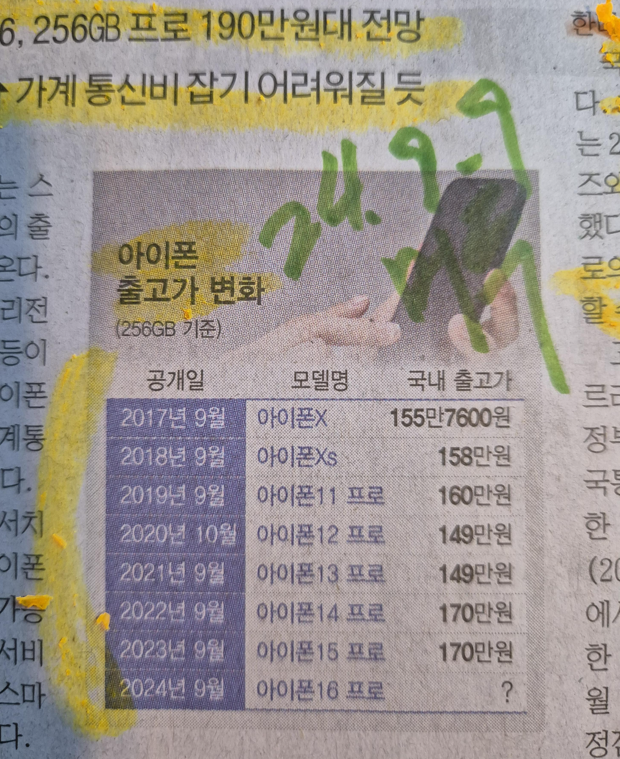 아이폰 16프로 190만원 시대? 출고가 인상의 기록 24.9.9 머투