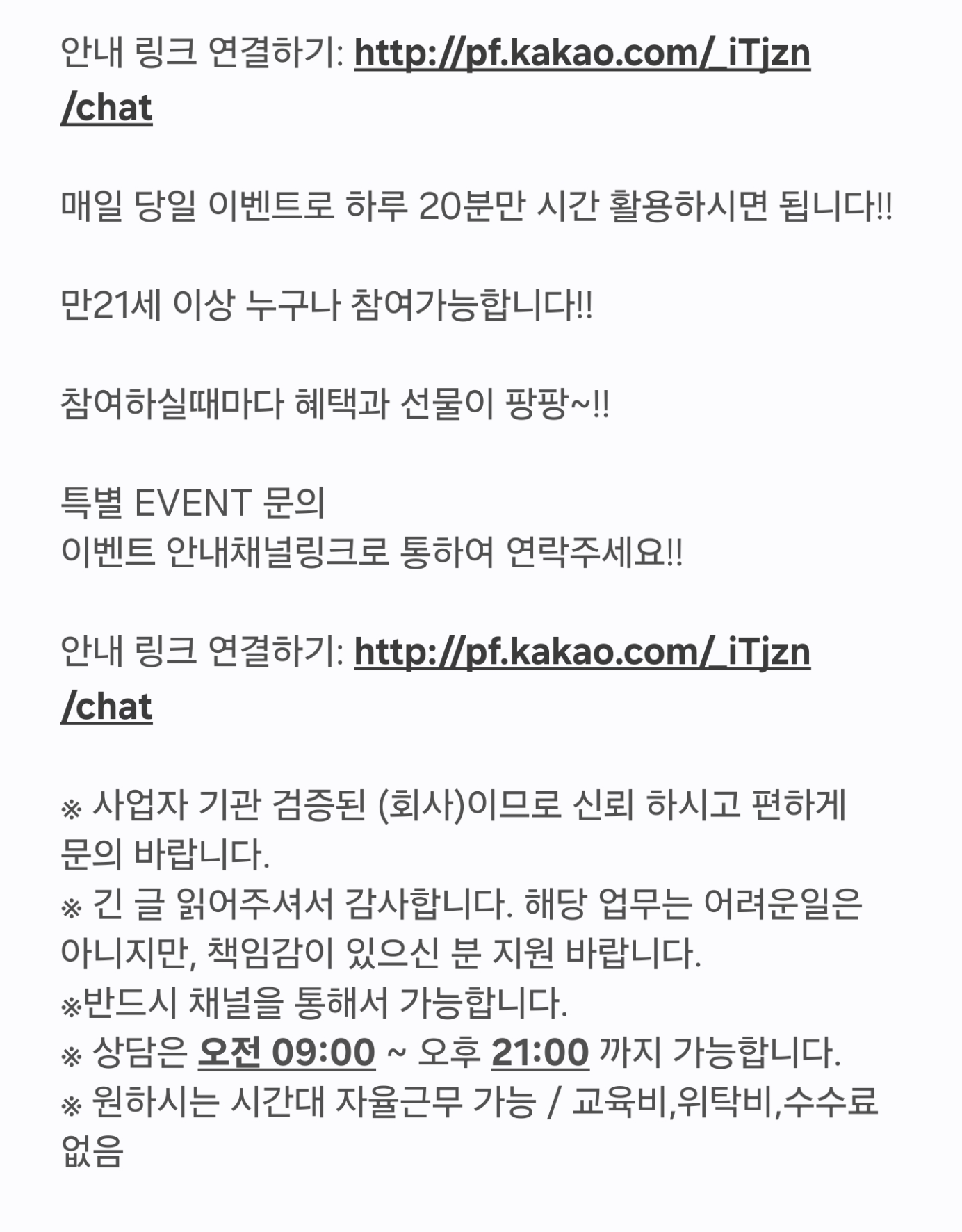 이상한 투잡 소개를 빌미로 금전적 이득을 취하려는 것으로 예상된다.