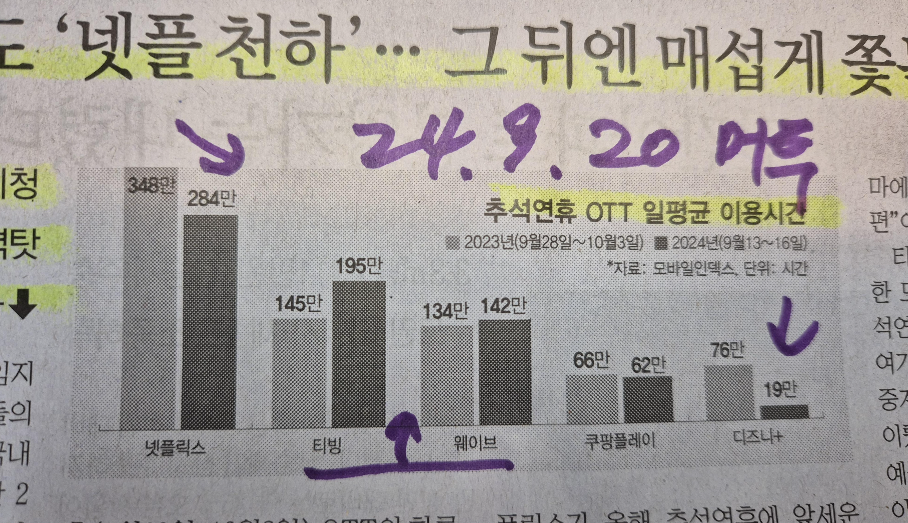 OTT 추석 연휴 어디 앱을 많이 사용했을까? 넷플 쫓는 티빙과 웨이브 24.9.20 머투