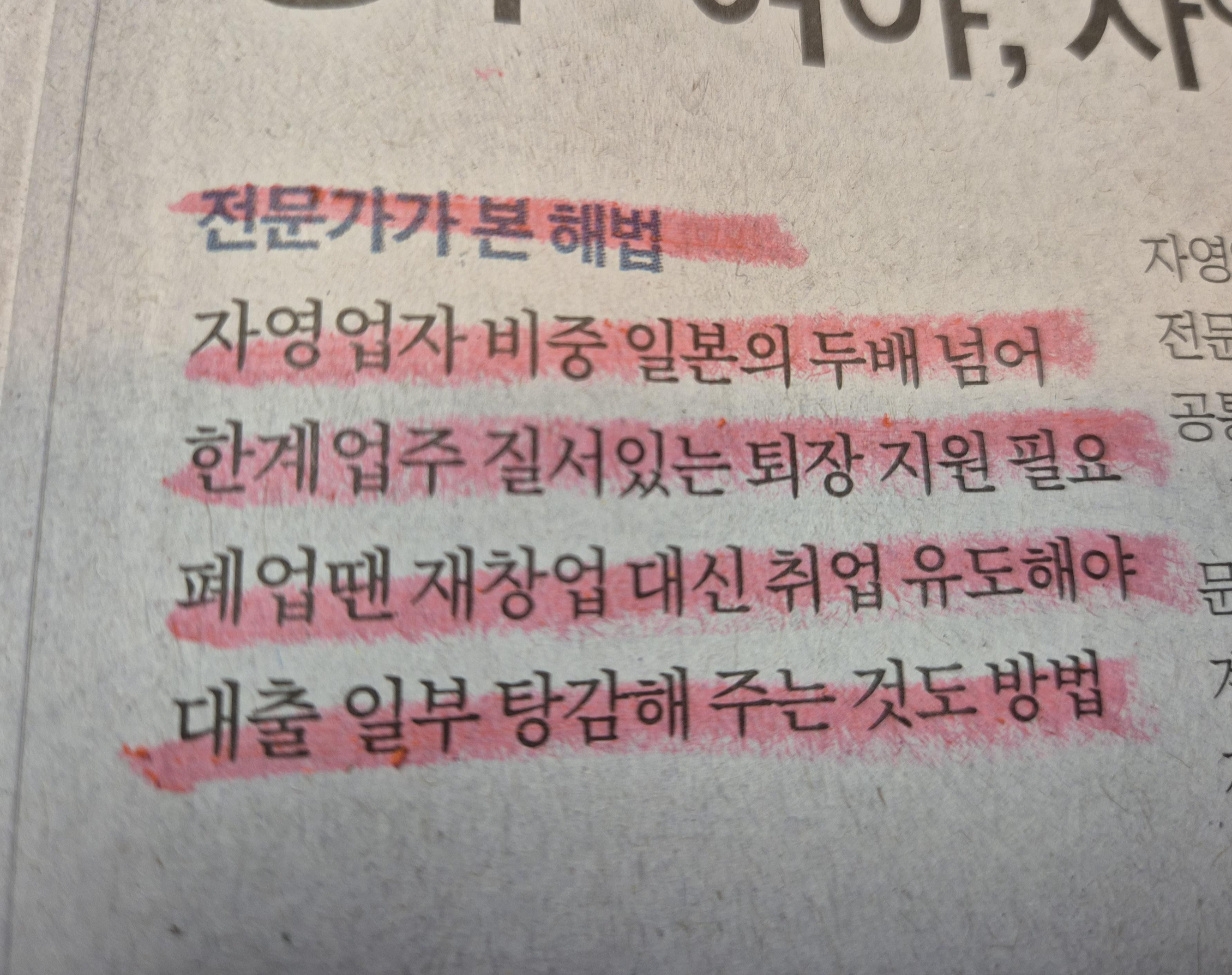 -최근 들어 대한민국 자영업자의 현실에 대한 기사나 뉴스, 방송이 자주 방영되고 있다. 월 100만 원을 벌고 있다는 자영업자의 현실. 물론 돈을 많이 버는 자영업자는 당연히 있지만 대부분의 자영업자는 생존을 위한 버티기로 폐업도 하지 못하는 경우도 있다고 한다. 폐업에도 몇 천만이 든다는 것을 보고 시작도 돈이지만 끝을 위해서도 큰돈이 들어간다고 한다.