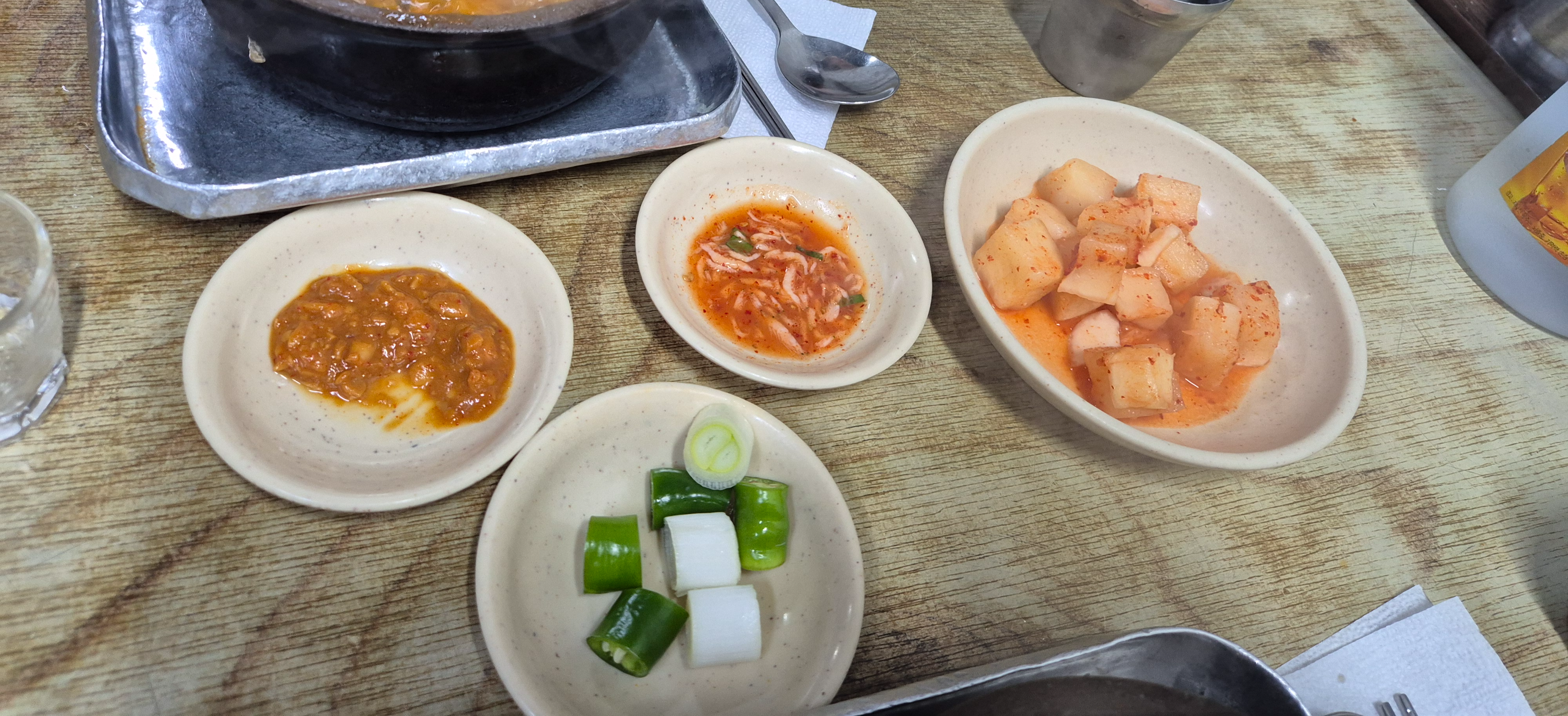 반찬은 깍두기, 새우젓, 된장과 고추 그리고 생파 줄기 부분.. 여전한