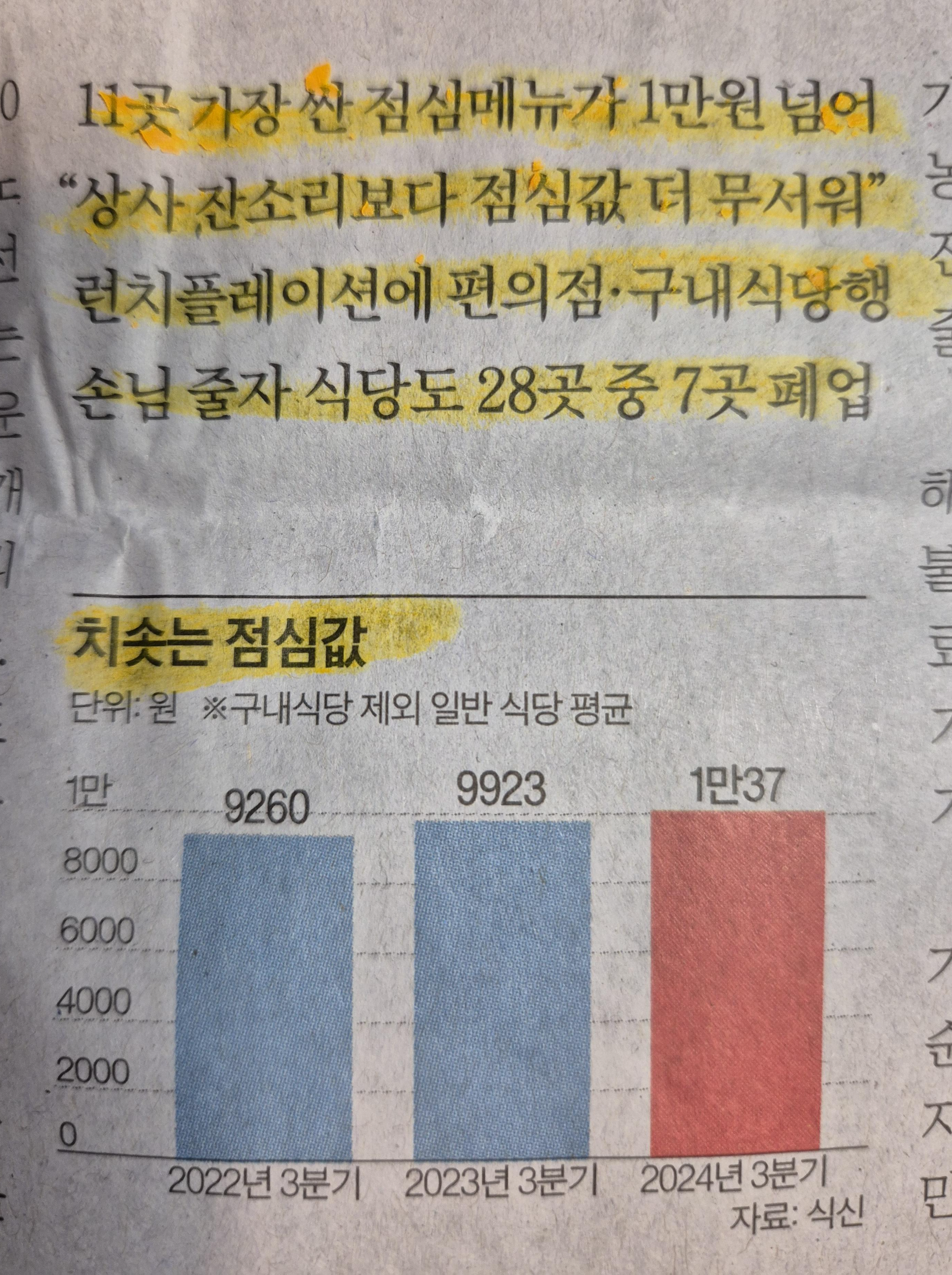 -12년 전 대비 최소 50%의 평균 점심 값 인상률. 친절하지 않은 자본주의 직장인의 삶.