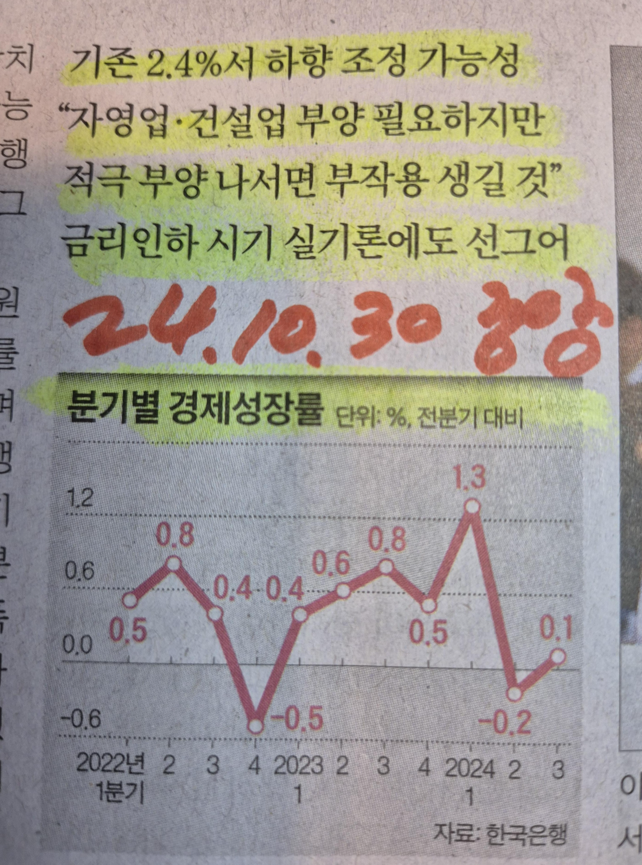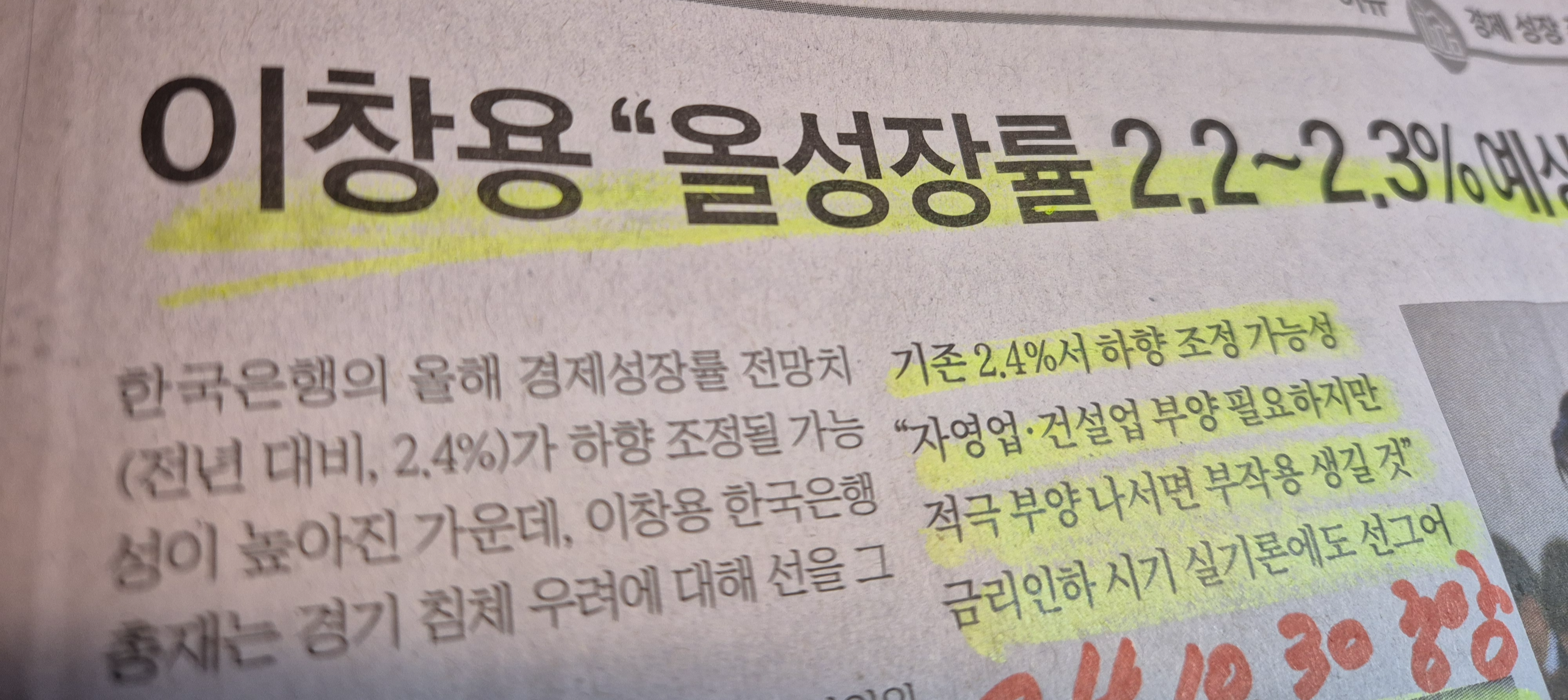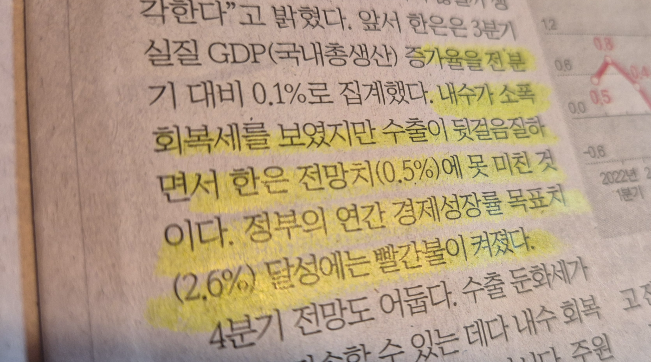 -연초 2.6% , 이창용 한국은행 총제는 2.2-2.3% 예상하고 있지만 현재로서는 이 또한 4분기 큰 성장치를 이루어야 달성할 수 있는 수준으로 보인다.