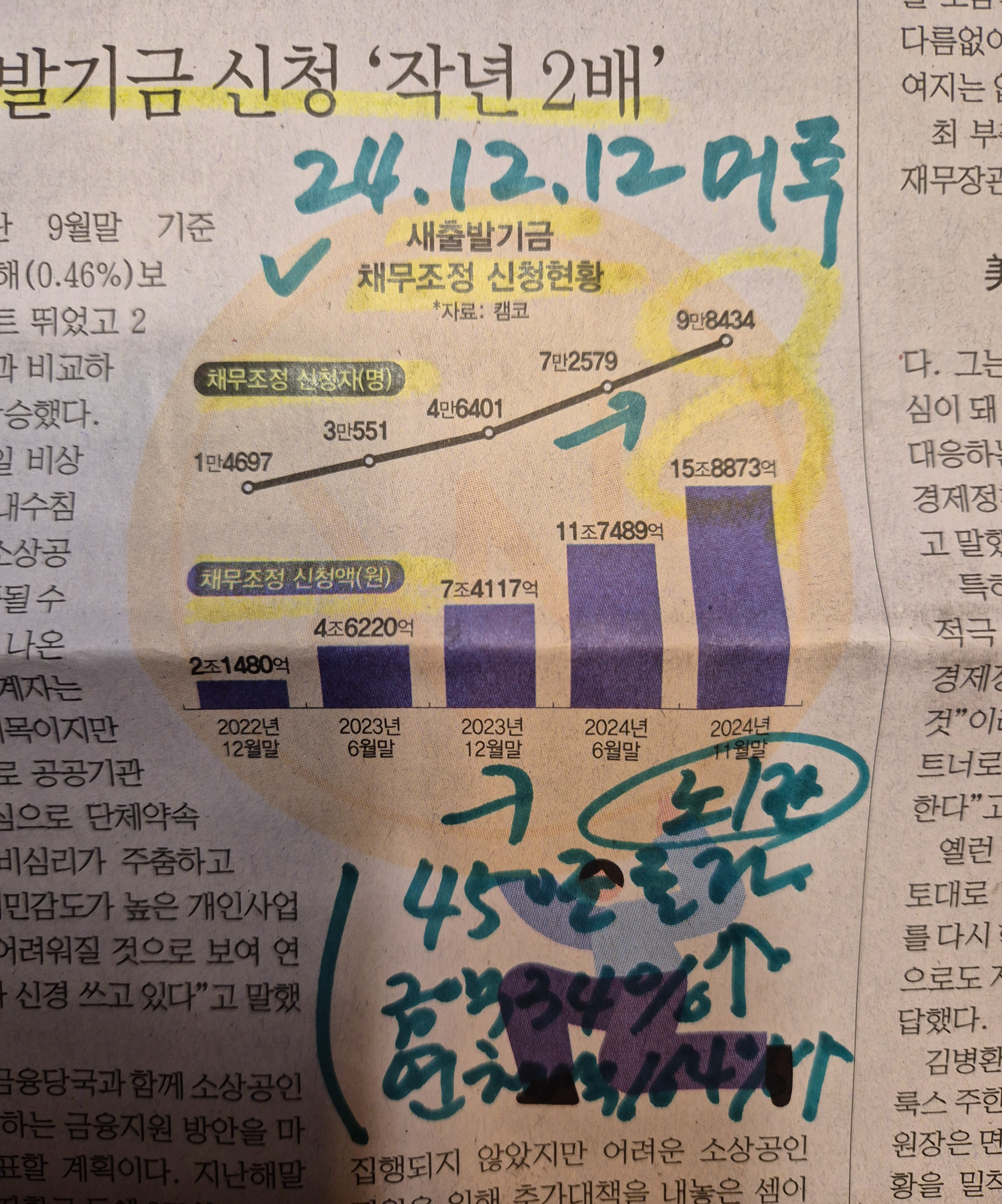 -가장 우려되는 부분은 연체액은 4년반동안 9851억 원에서 2조 6천억 원이 넘는 164% 늘어난 부분이다. 연체액이 기하급수적으로 늘어나는 것이 현재의 상황이다.