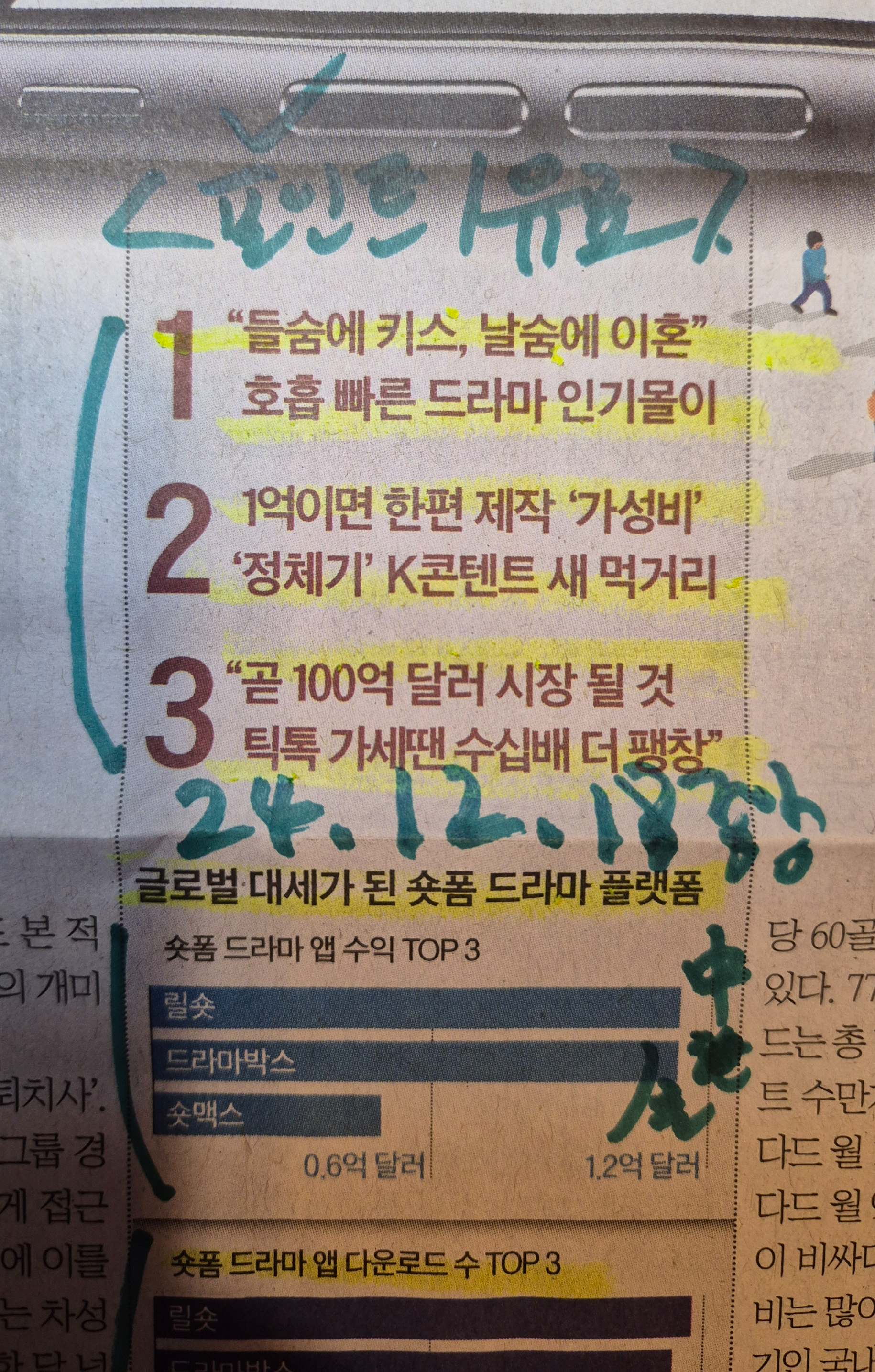 -이미 한국과 중국 그리고 미국의 플랫폼 업체들은 숏폼 드라마를 유료로 출시하고 있다.