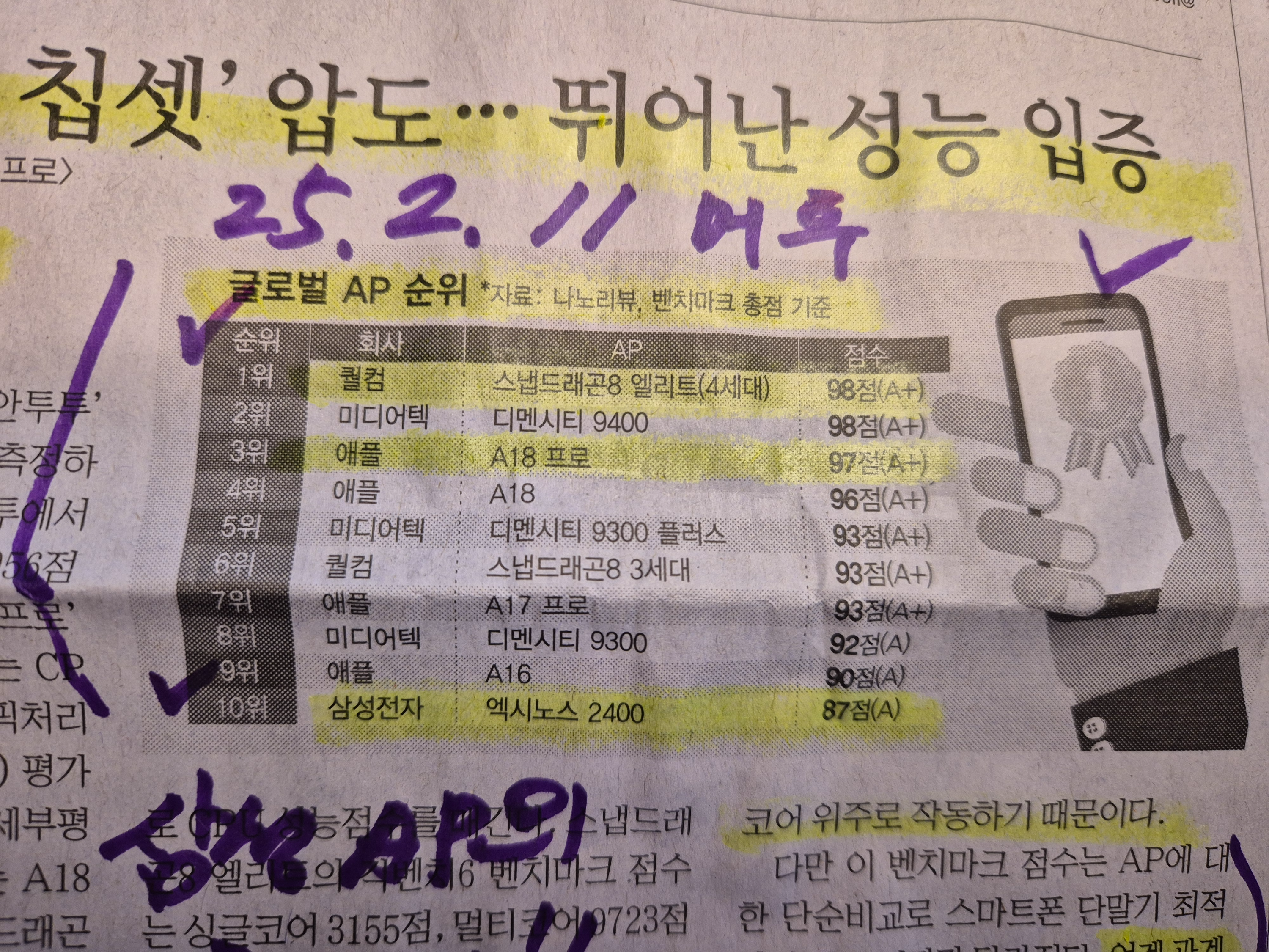 -삼성 엑시노스 AP칩이 최고의 평가를 받던 시기가 불과 몇 년 전으로 기억되는데 이제 퀄컴과 애플 그리고 미디어텍에 성능평가에 밀리게 되었다.