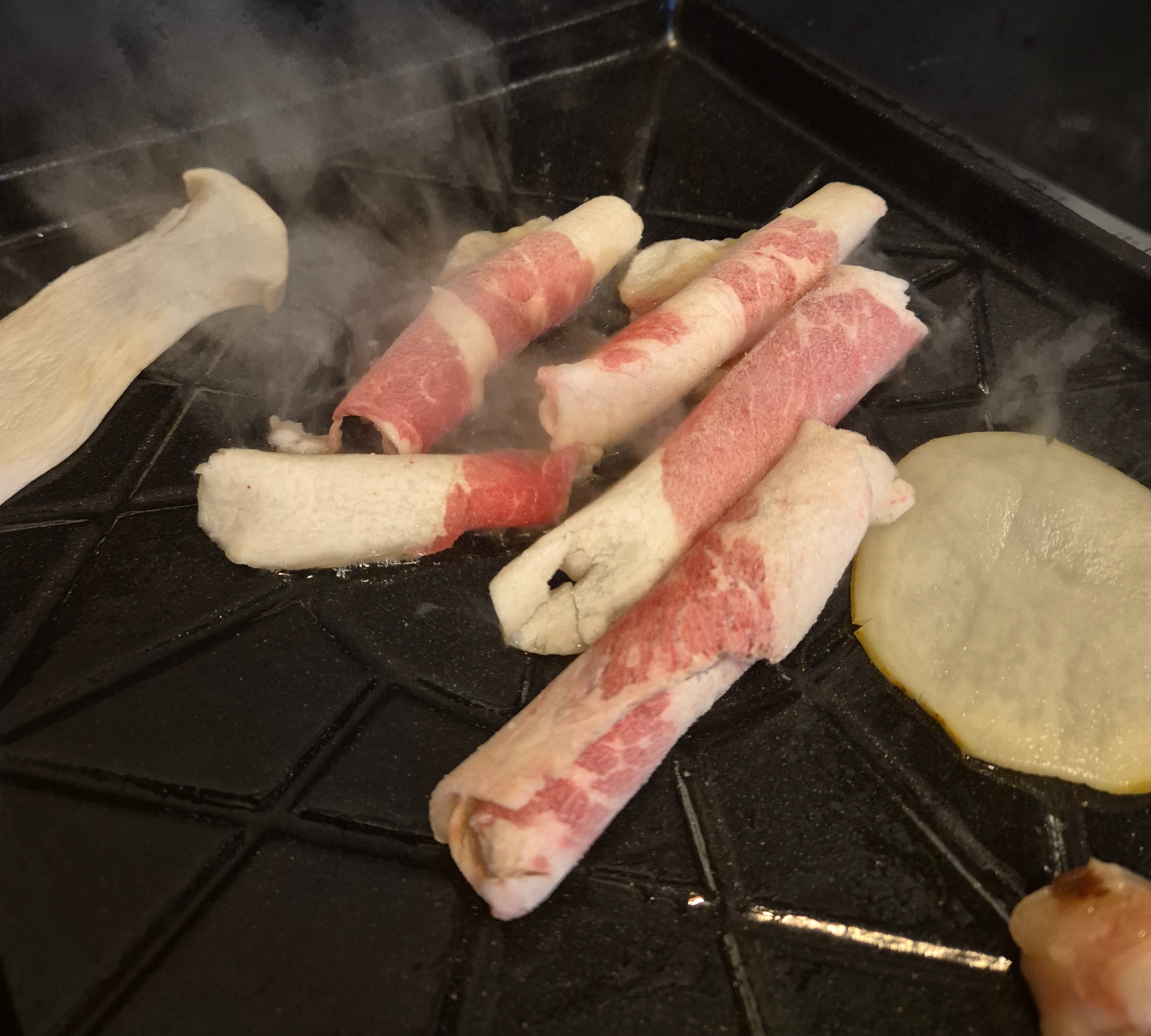 뜨거운 주물로 만든 판 위에서 한 점씩 한점씩 올려 굽고
