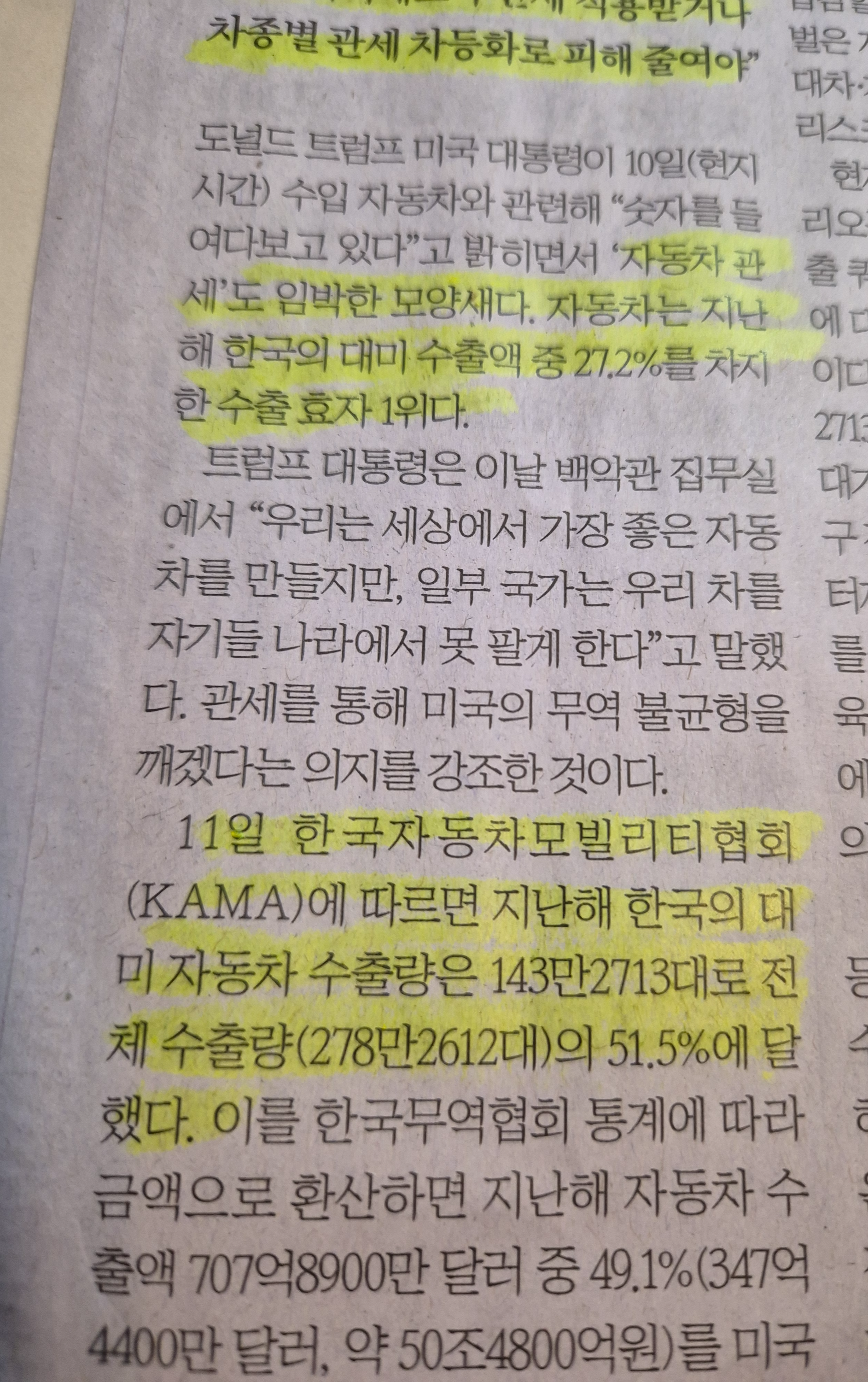 -이러한 결과로 한국 자동차는 전체 한국 수출 중 27% 정도가 미국으로 수출되는 물량으로 1/4 넘는 상황이다.