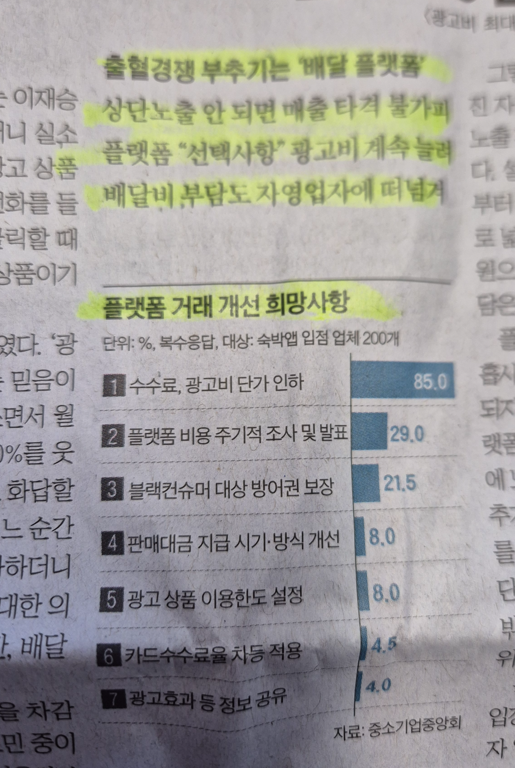 -숙박 플랫폼 또한 고액광고 업소만 할인쿠폰 혜택을 주며, 매달 몇십만 원에 달하는 광고비를 지속적으로 지출해야만 고객을 유치할 수 있는 상황이라고 한다.