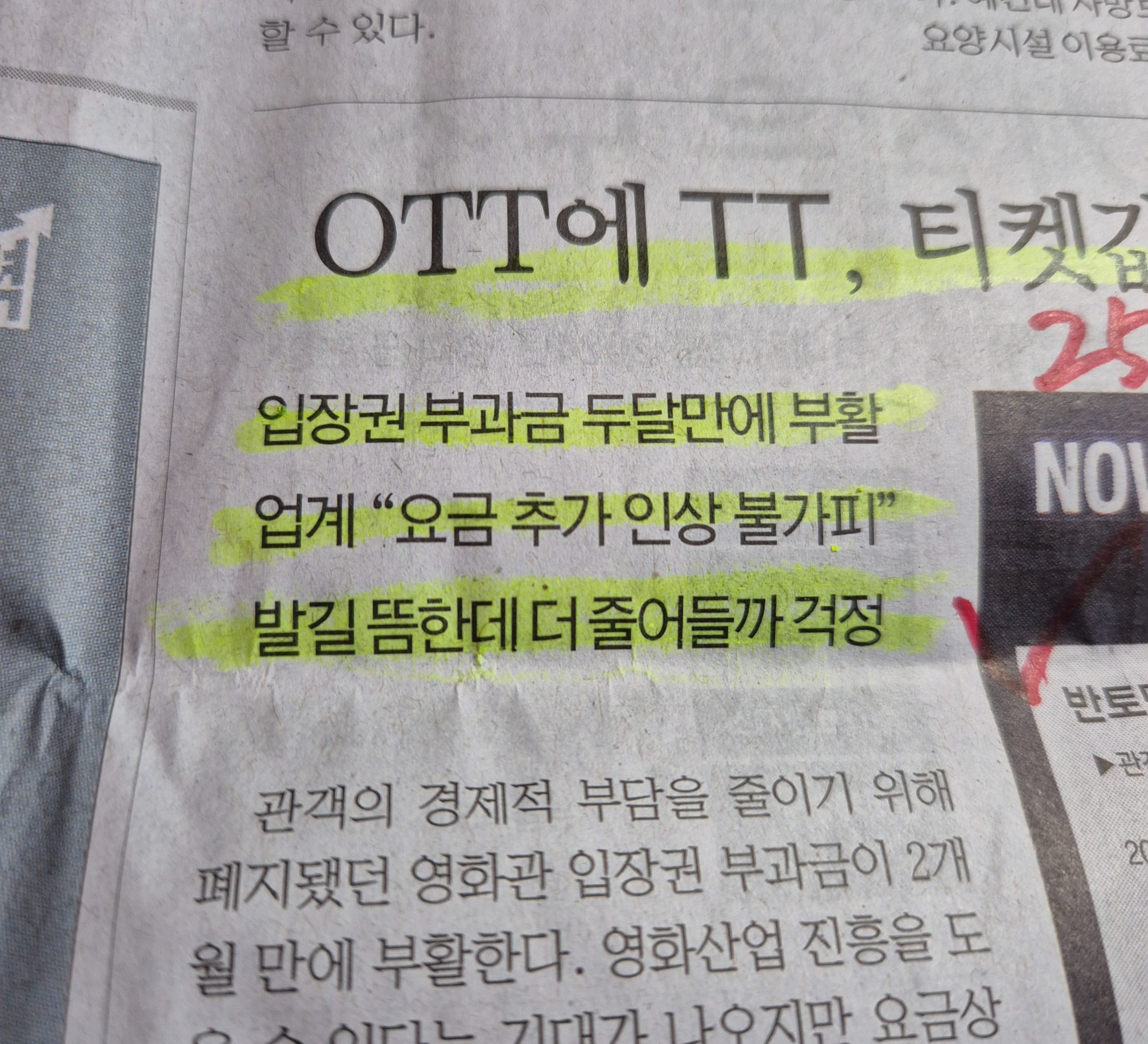 -이런 상황에 기름을 넣는 입장권 부과금 관련 법 개정을 준비중이라고 한다. 결국은 시대가 변화되는 것을 막지 못하는 것일까?