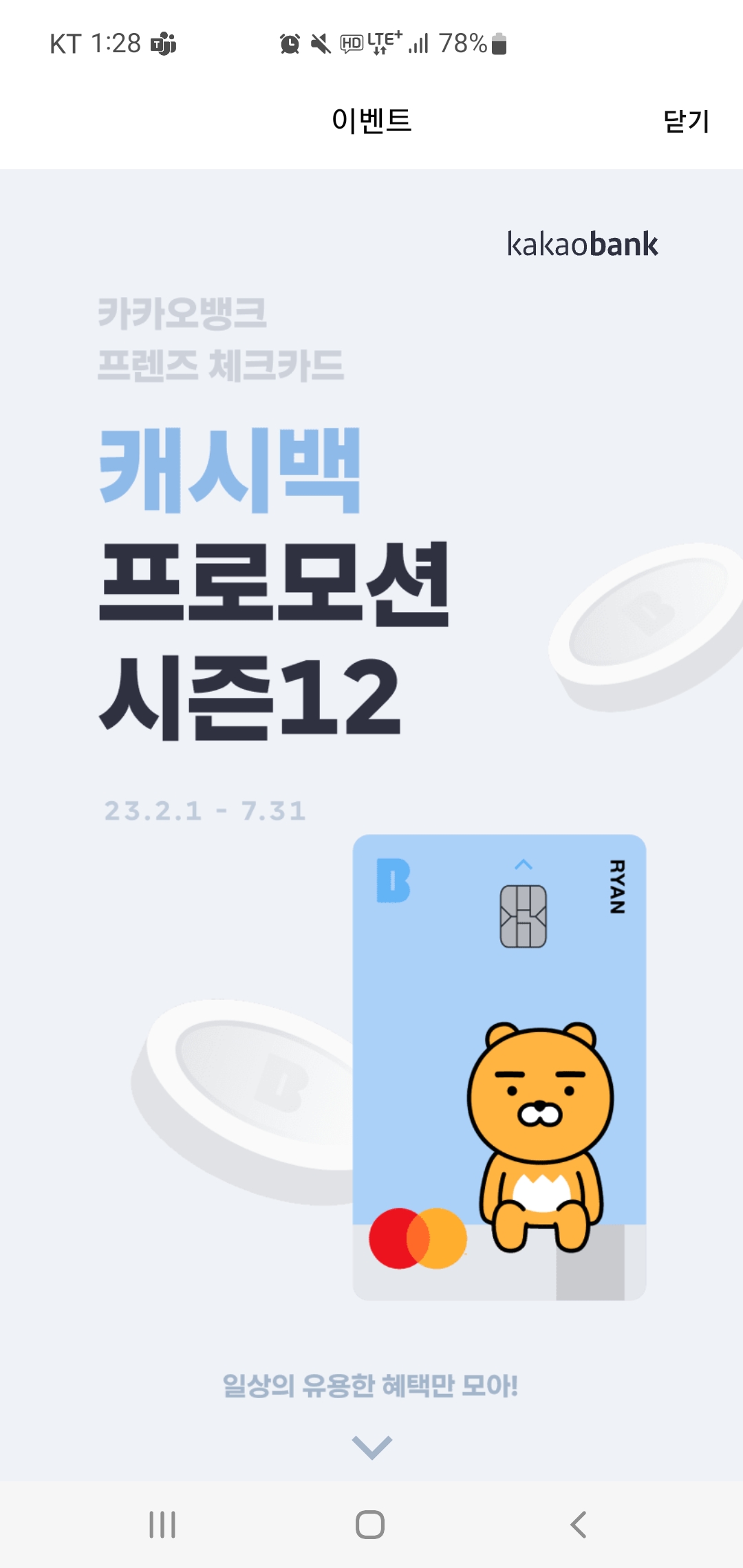 카카오뱅크 체크카드 캐쉬백 시즌12 23.2.1~7.31 #카뱅 시즌11과 비교!!