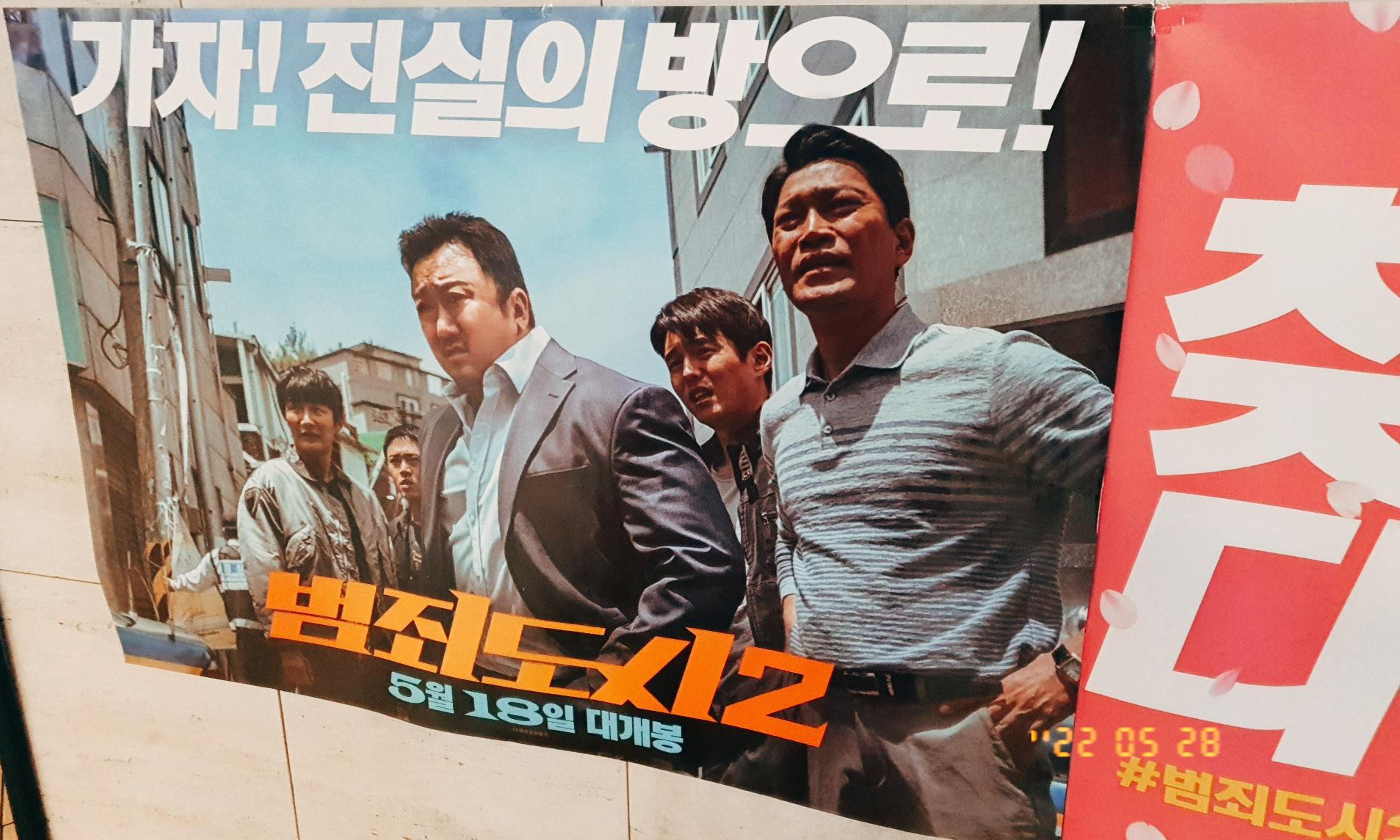 나와 나와 와이프는 5월 마지막주 용산 롯데시네마에서 보는데 점심 시간임에도 불구하고 사람이 많았다. 영화 소개에서 주연은 당연히 마동석, 손석구, 그리고... 최귀화(?) 배우님? 1편에 비하여 비중이 늘기는 했지만 ..... 주연.... Anyway!! 리뷰전 범죄도시2를 표현하는 것은 마블리 마동석과 동료들의 뻔한 활약과 죽일놈 손석구 그리고 마동석스튜디오의 통쾌 패턴