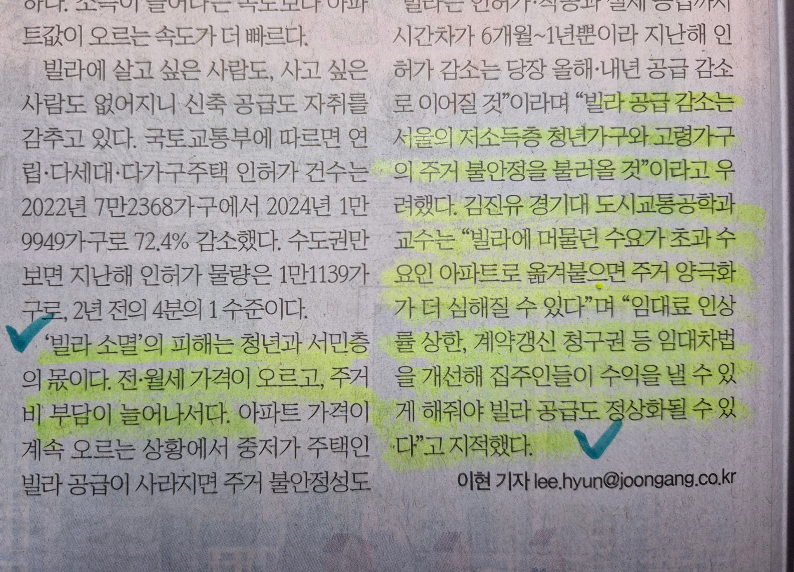 -집주인이 빌라를 통해 수익이 나와야 하는데 전세의 감소로 큰 위기상태