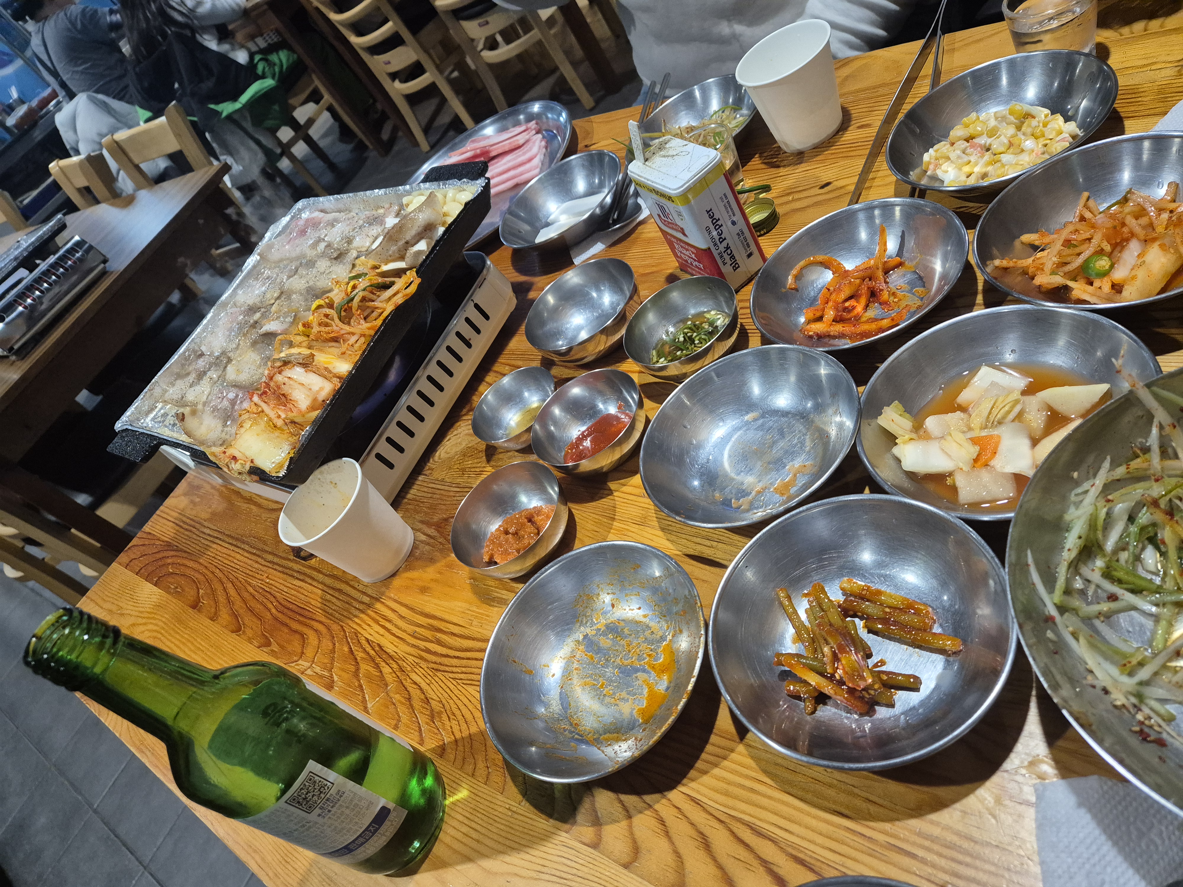 칼바람을 맞으며 가게에 도착해 뜨거운 불판에 냉삼이 올라가니 따뜻하고 아늑한 저녁식사 시간으로 바뀐다.