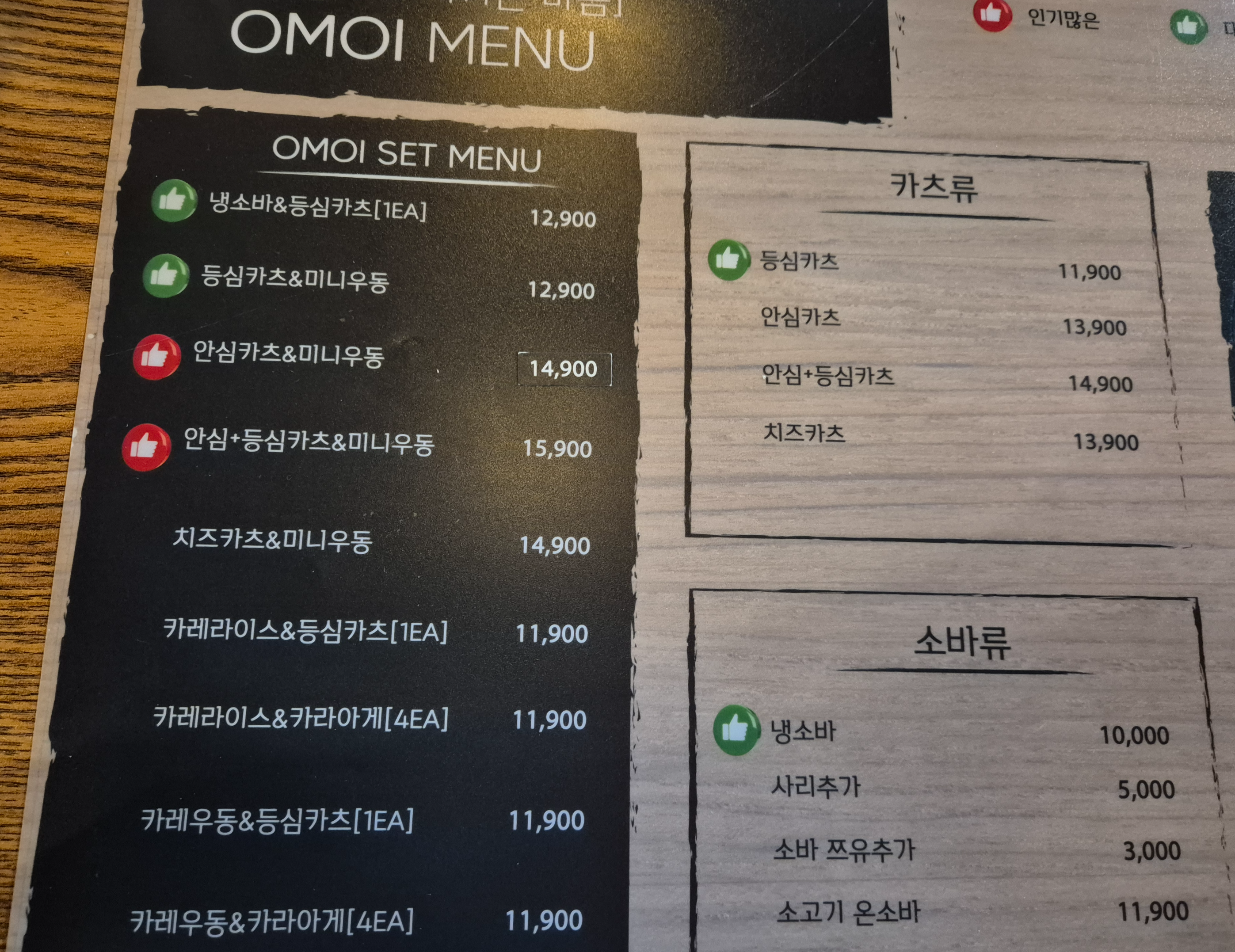 오모이 세트 메뉴