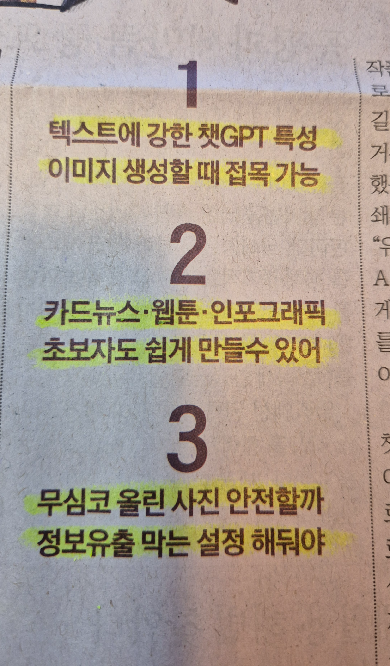 - 그리고 사람들은 이제 더욱 다양하게 사용할 방법을 찾고 있다. 챗GPT 핵심은 그래픽/ 픽처/ 텍스트이다. 업무에 사용할 수 있는 그래픽과 그림 텍스트 등을 통해 우리는 업무의 효율을 높일 수가 있다.