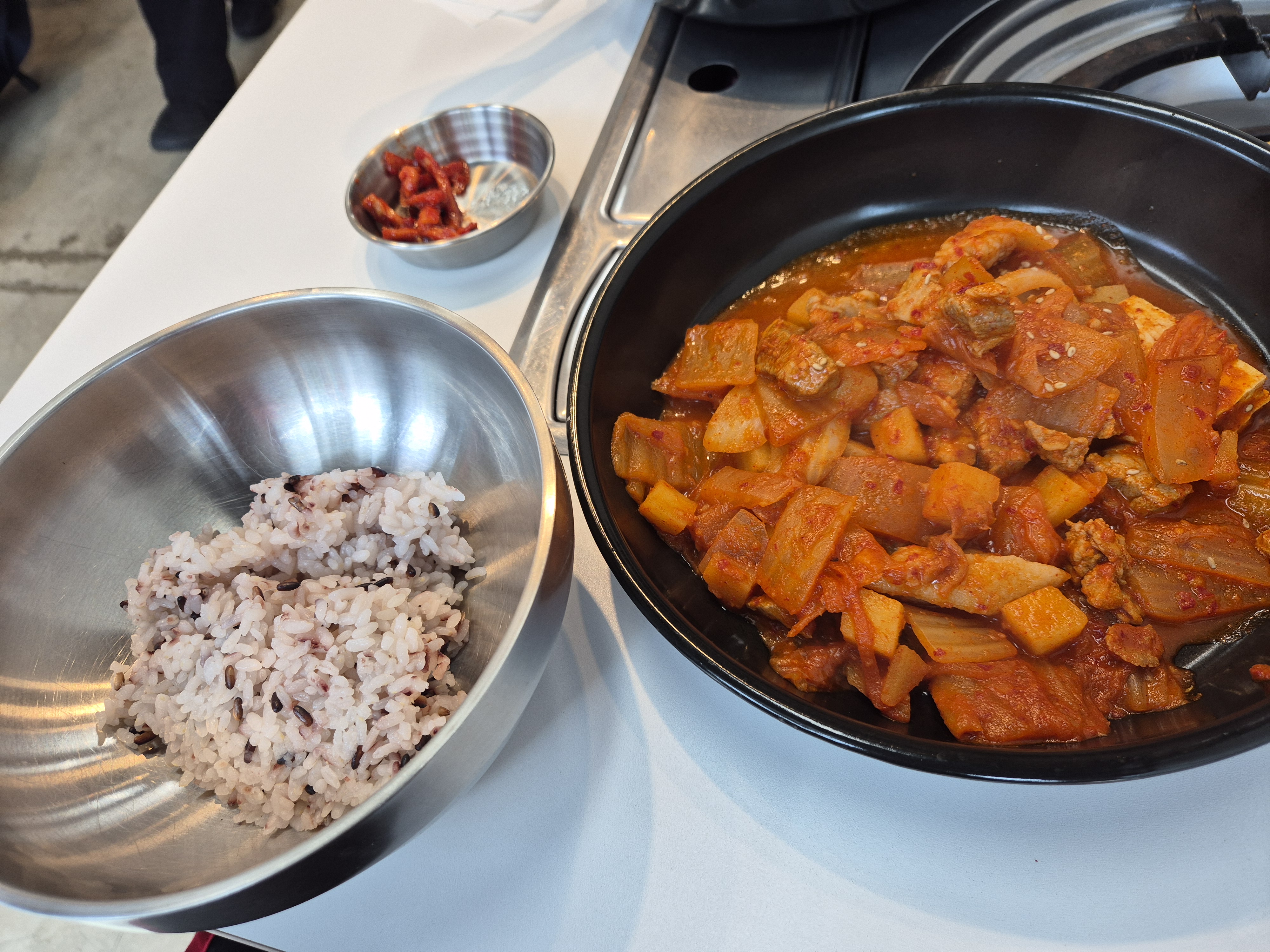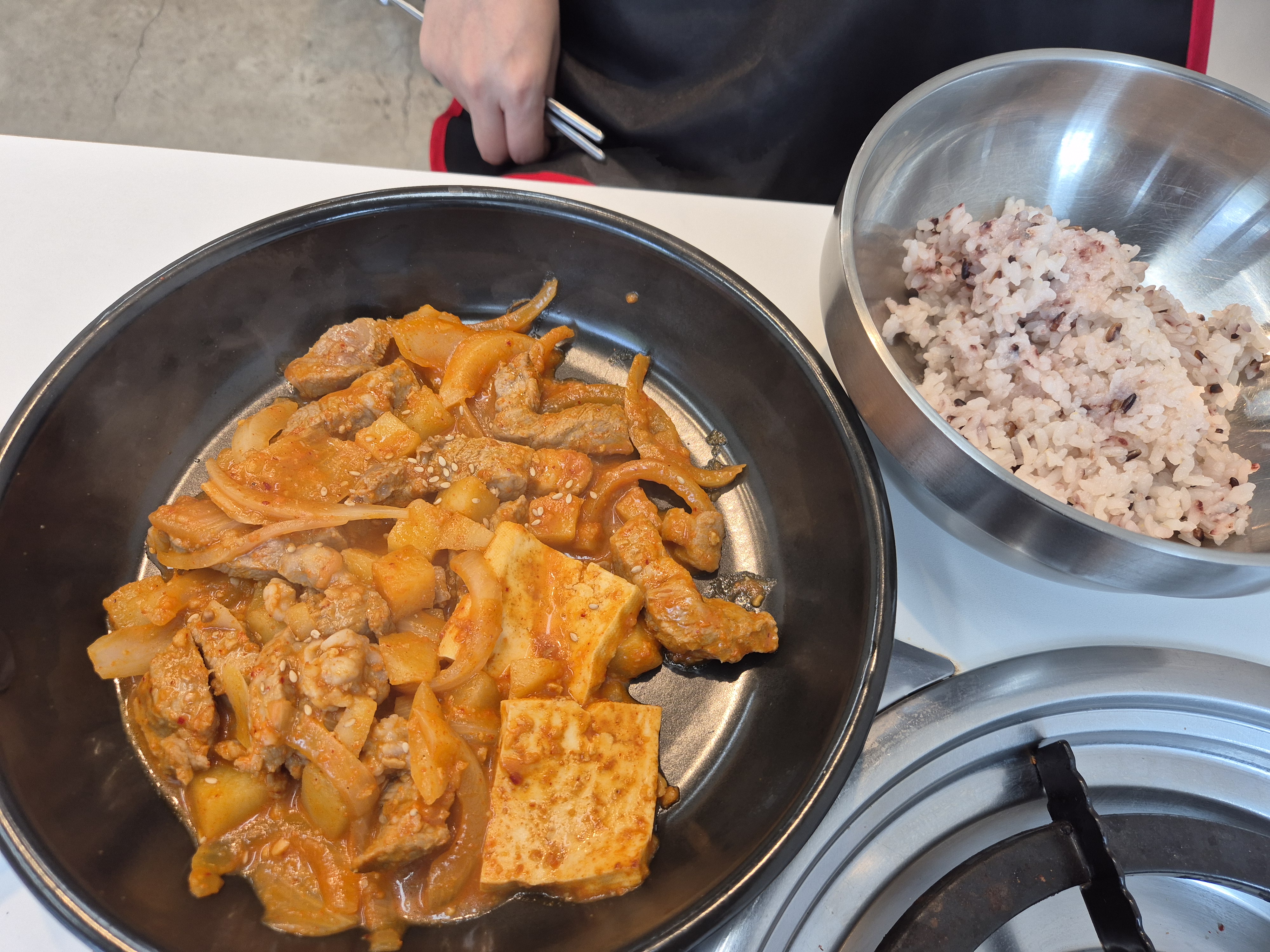 - 김치의 명불허전한 맛도 있지만 밥과 함께 깍둑썰기 감자 김치, 양파의 조합은 밥 한 끼는 뚝딱 만들어 준다.