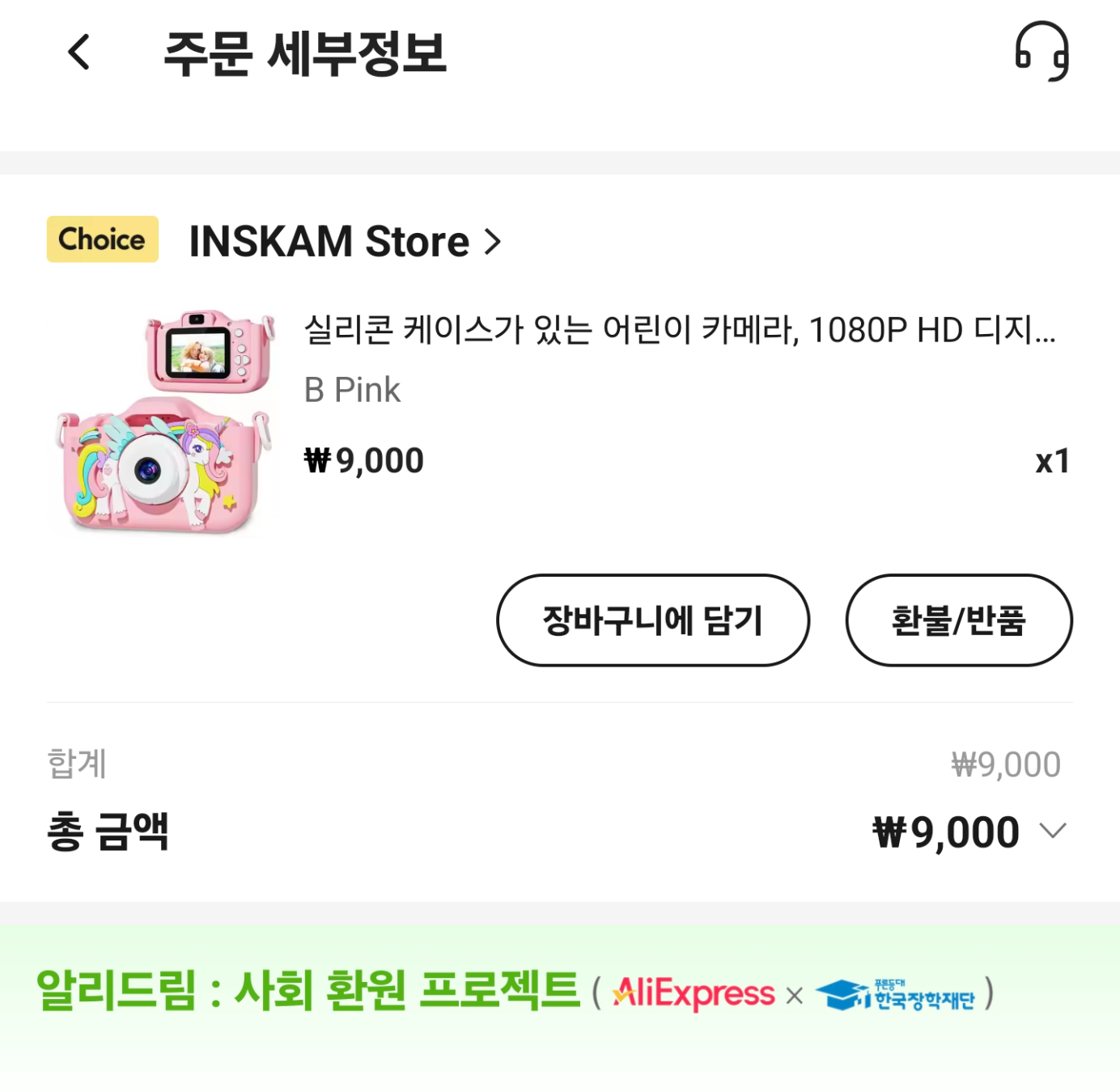 알리익스프레스 실리콘 케이스가 포함된 어린이 카메라 : 9,000원