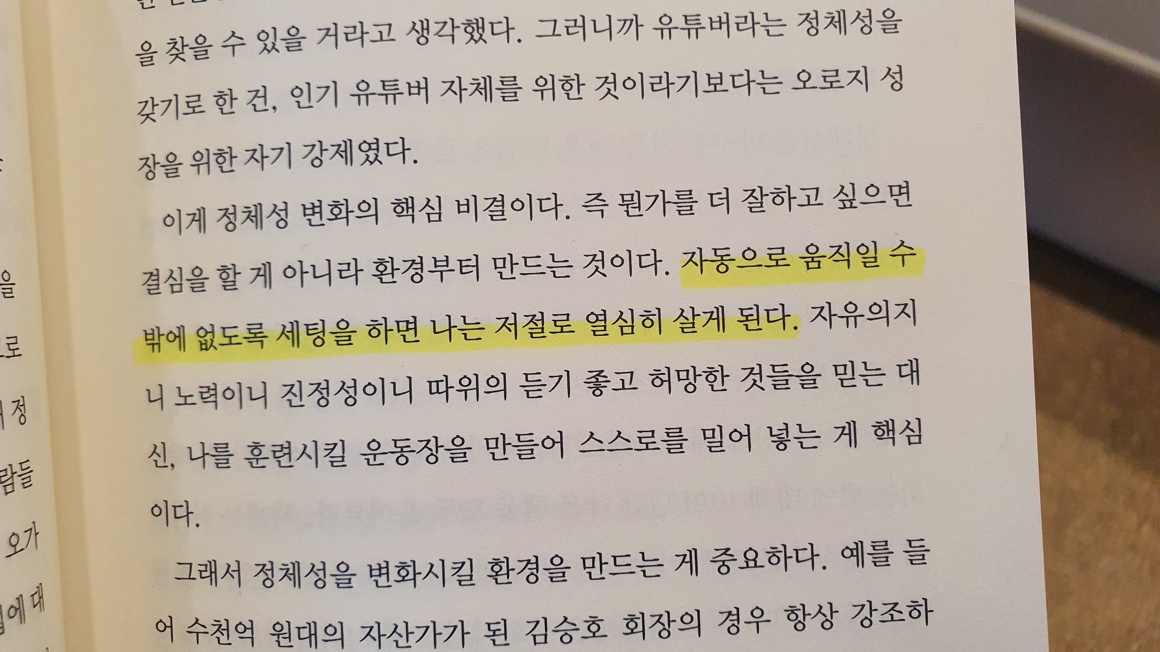 결론적으로, 자동으로 움직일 수 밖에 없도록 세팅을 하면 나는 저절로 열심히 살게 된다.