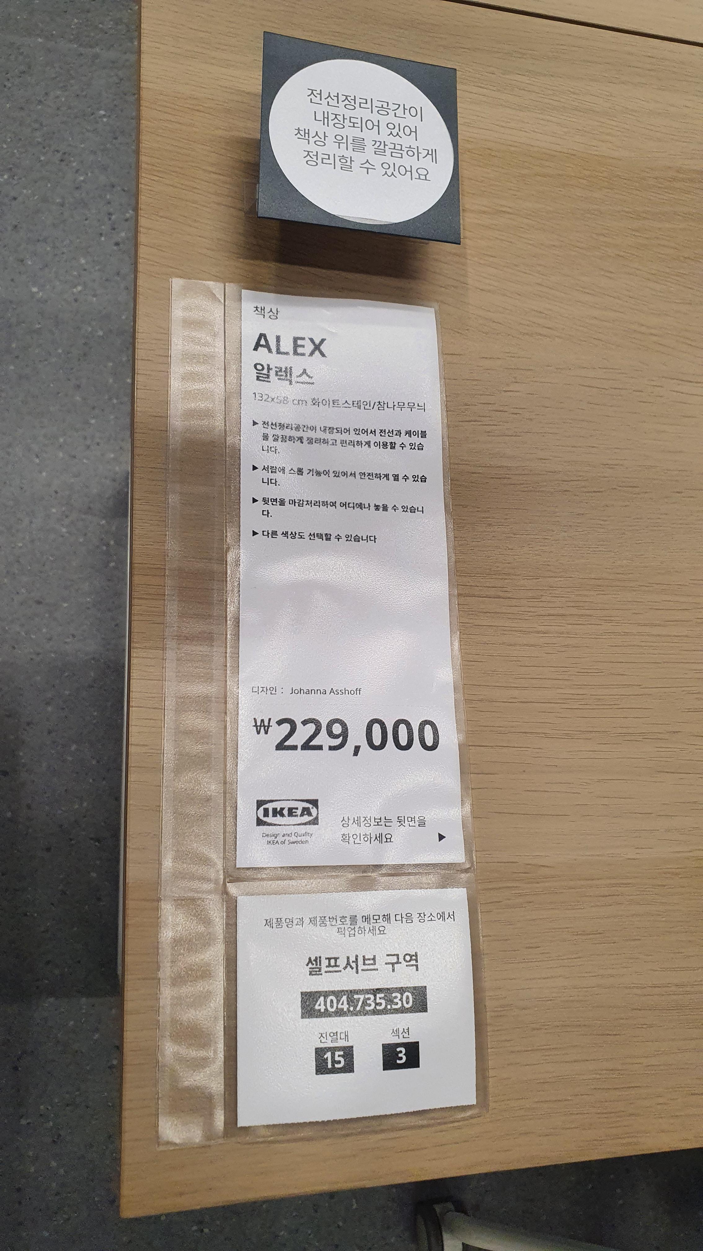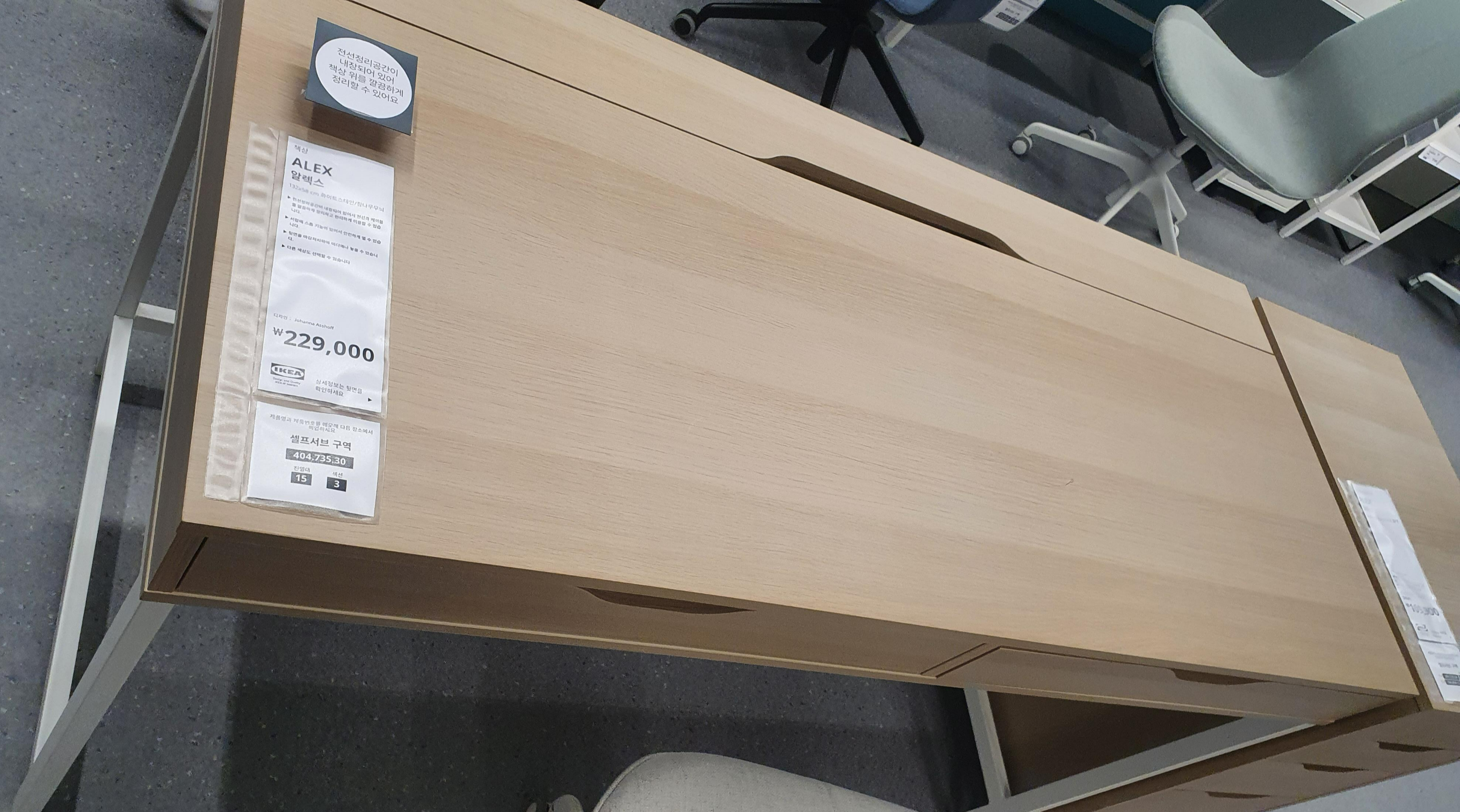 책상형태의 제품 라입업 중 심플하면서도 선관리에 좋아보이는 제품이라 찍었다. 위쪽에 전선정리 공간이 내장되어있어 깔끔하게 정리할 수 있다. 가격은 229,000 원