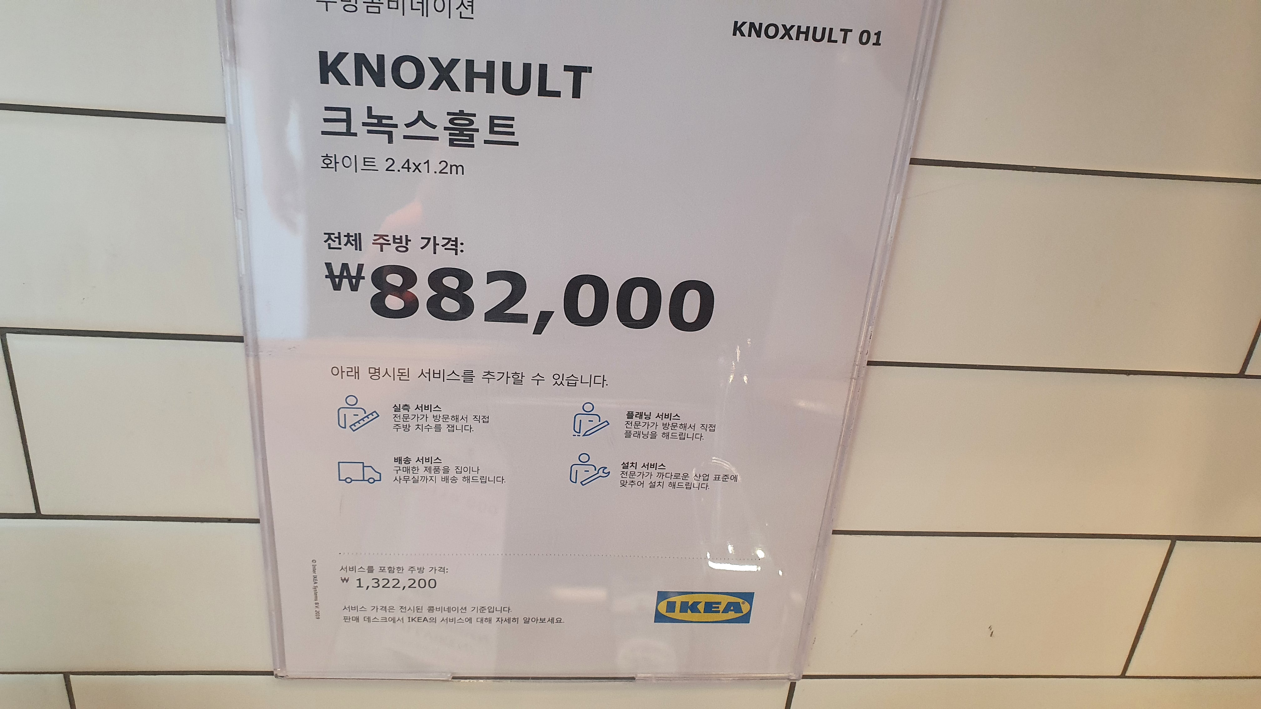 이 제품을 찍은 것은 이케아에서 판매중인 식탁중 가장 기본형에 가까운 제품. 즉 가장 싼 제품라인이다. 원목으로 이루어져 다른 대리석 형태의 제품보다는 디자인적인 이케아 미니멀리즘에 가까운 느낌 물론 제품설치를 하면 가격은 훌쩍 1백3십만원 넘어간다. 가격은 882,000원