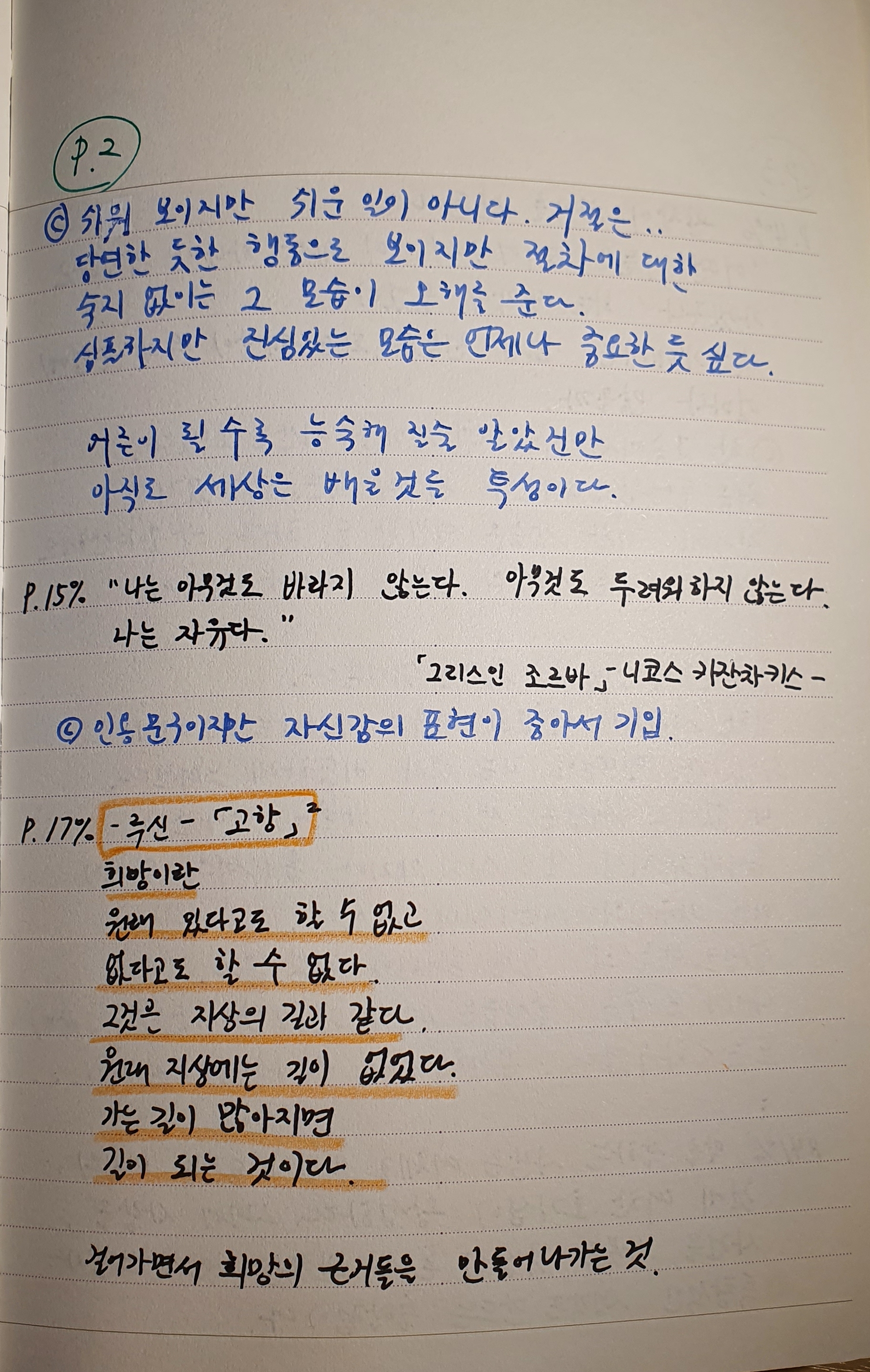 P.15% "나는 아무것도 바라지 않는다. 아무것도 두려워하지 않는다. 나는 자유다." -그리스인 조르바 중- 니코스 카잔차키스