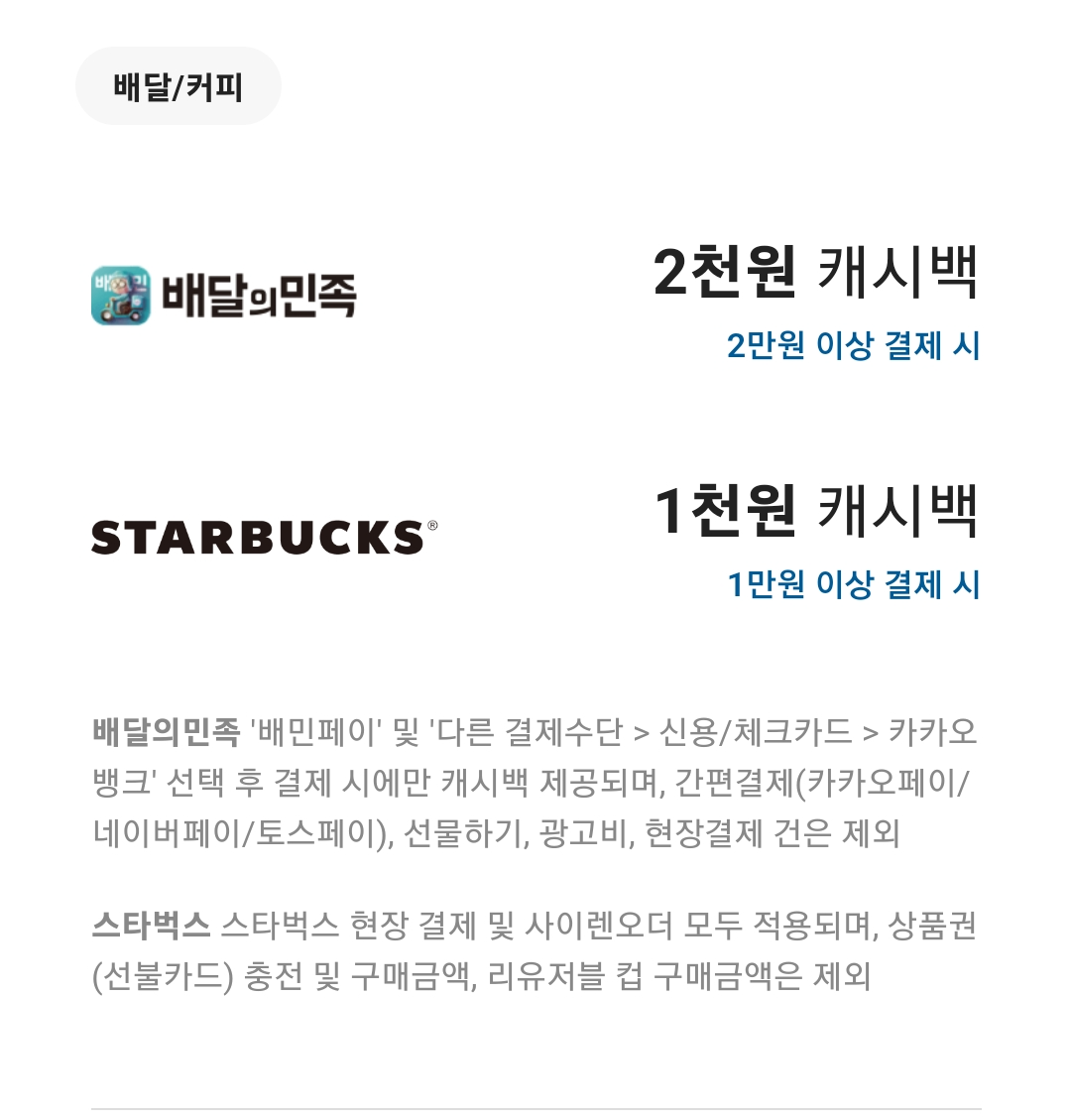 카뱅 시즌11때는 쿠팡 3천원/ 카카오 선물하기 2천원 캐쉬백 혜택에서