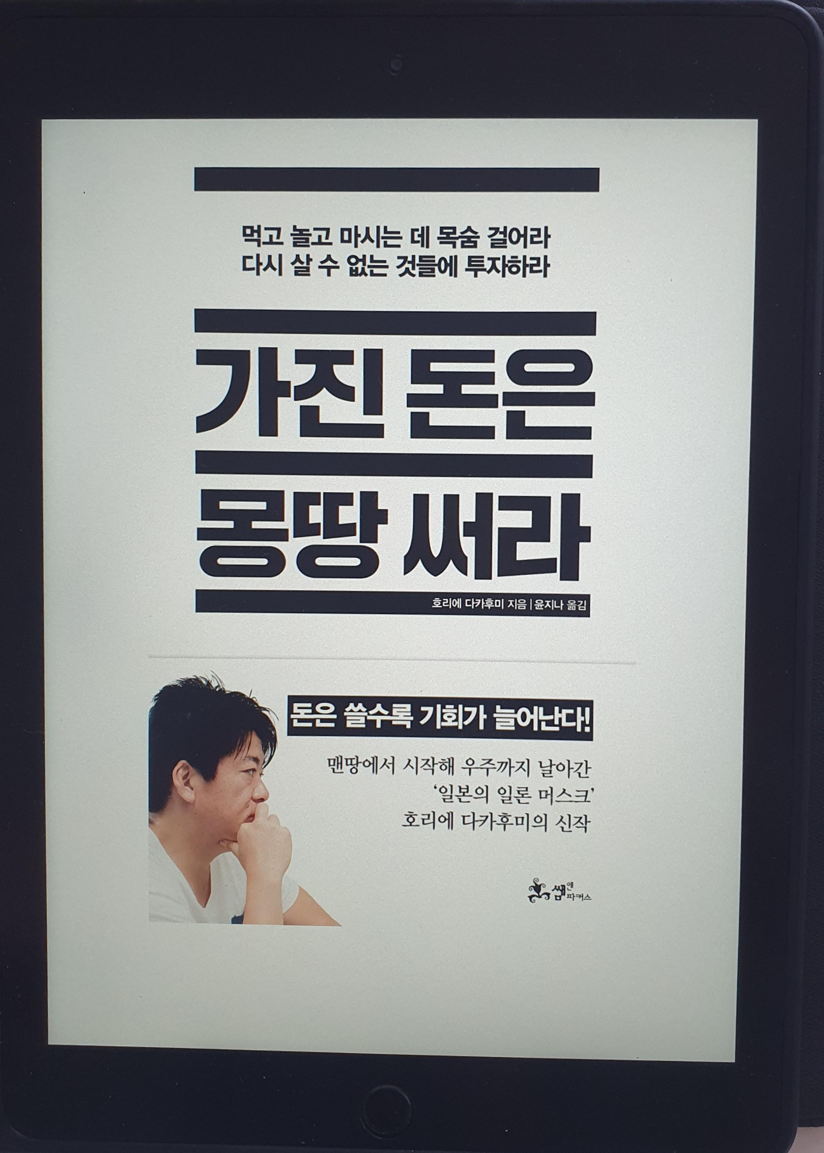 -책을 읽은 후 작가가 말하고자 하는 것은 아끼고 일반적인 재테크가 아닌 쓰고 경험하고 새로운 것에 대한 돈을 아끼지 않음으로써 새로운 비즈니스를 만들어 내는 것에 대한 본인의 즐거움을 이야기한 것 같다. 호리에 작가에게 세상은 새롭게 시도할 것이 많은 놀이터이며 남들과 다른 삶을 살고 싶다면 남들과는 다른 행동과 마인드를 가져야 함을 이야기한다.