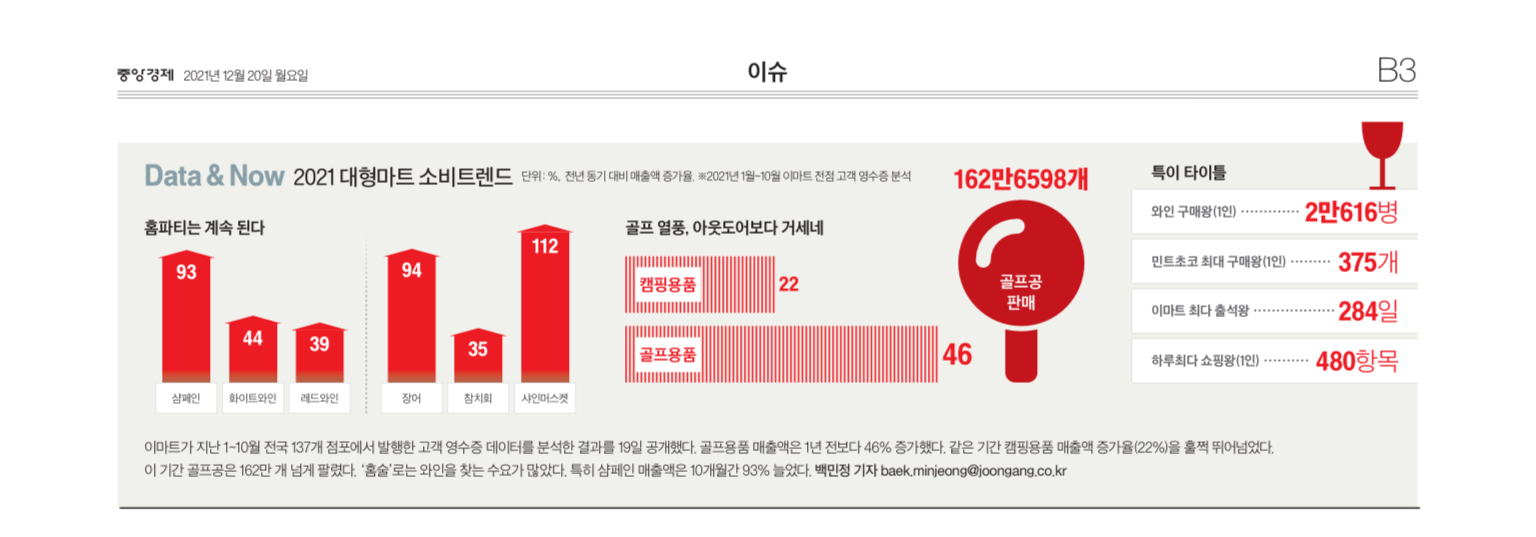 중앙일보/이마트 2021 대형마트 소비트렌드/홈파티, 골프용품