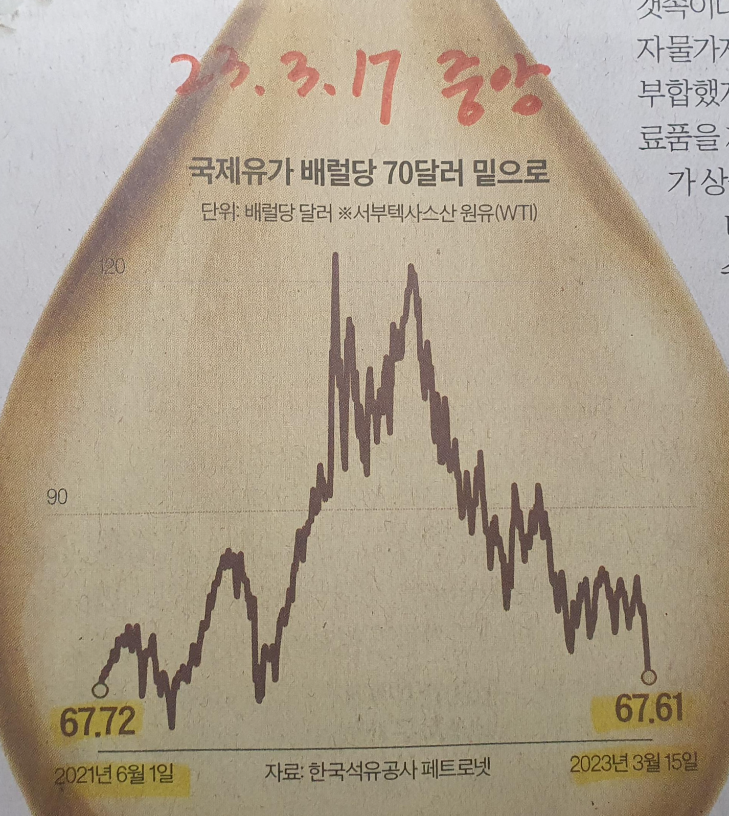 국제유가 하락세 70달러 밑으로.. 경기침체 신호!? 23.3.17 중앙