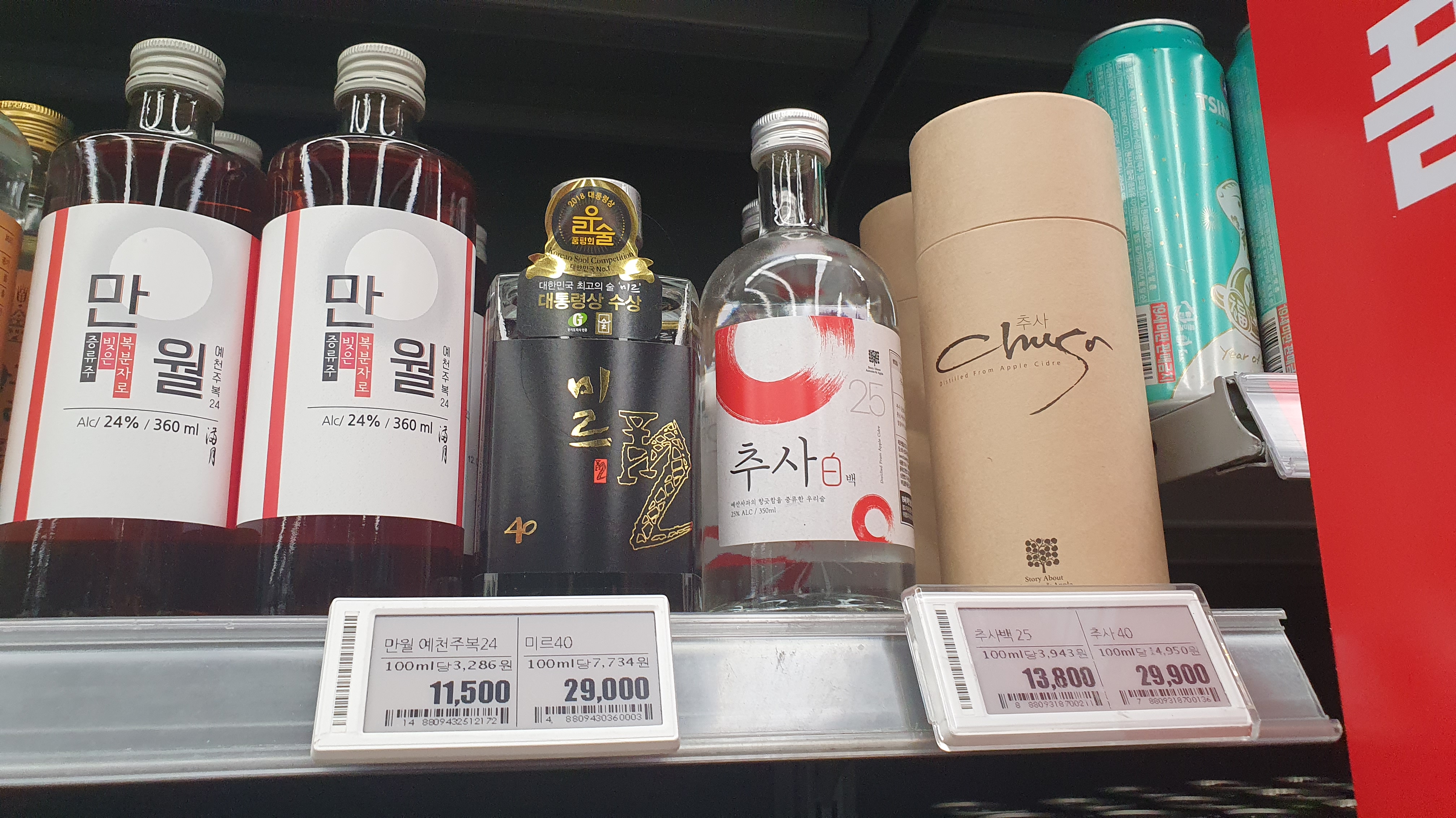 롯데마트 양평점 증류주 리스트 / 만월, 미르40, 추사, 황금보리, 매화랑, 밀담, 혼, 오크젠, 사락, 안동소주, 신안블랙 Updated 2