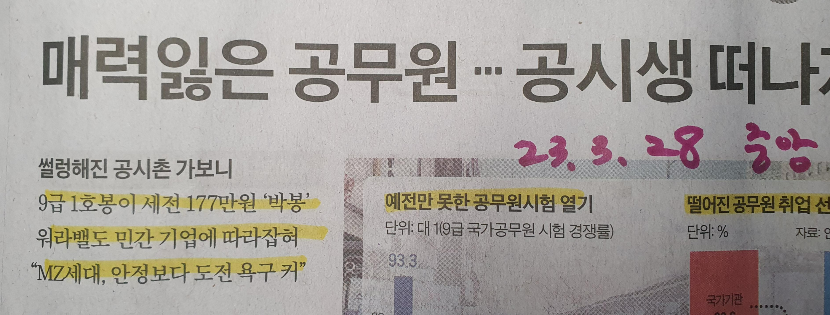 공무원 응시가 줄어드는 2023년. 시대의 변화? 23.3.28 중