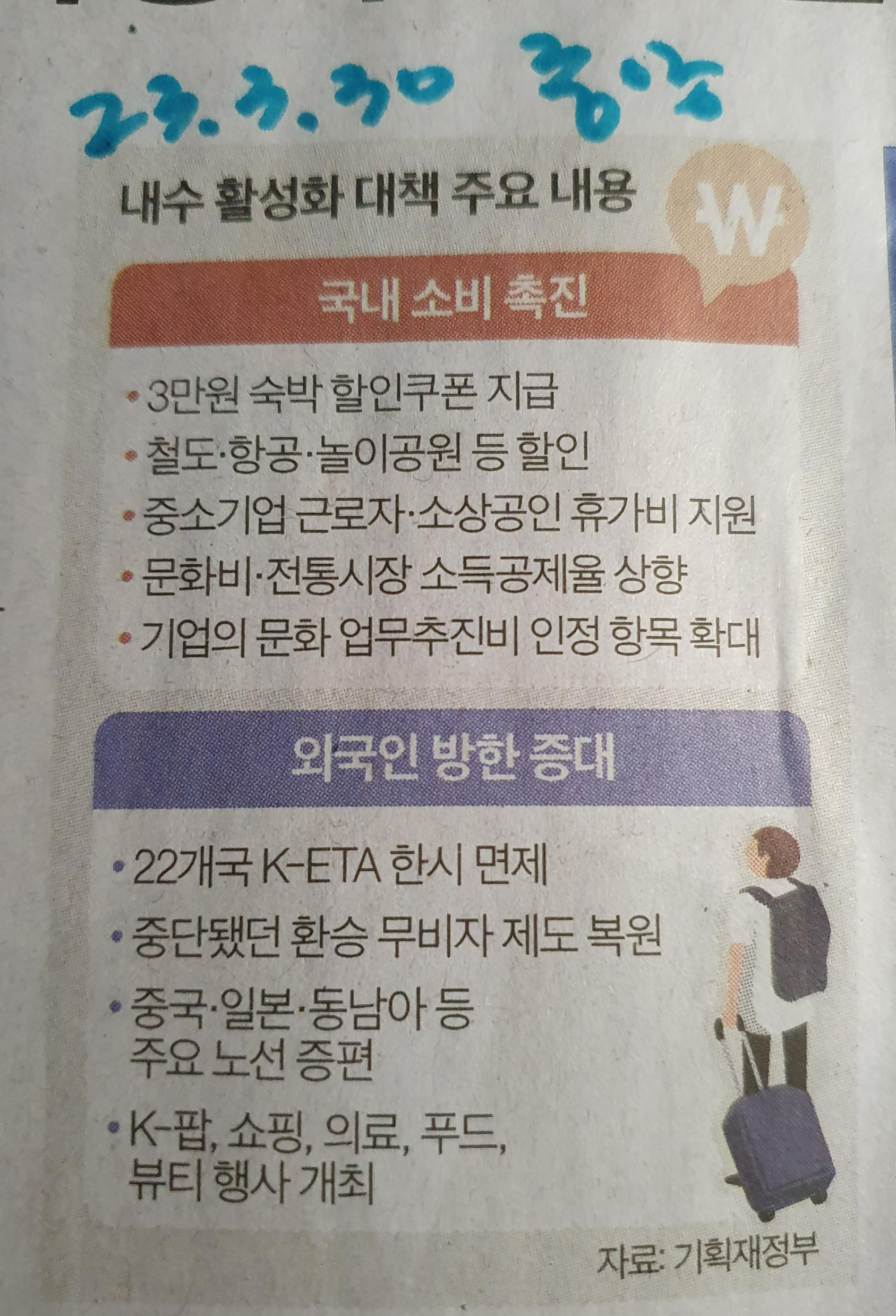 국내 소비 촉진 관광 여행 대책 & 외국인 방한 증대 23.3.30 중앙