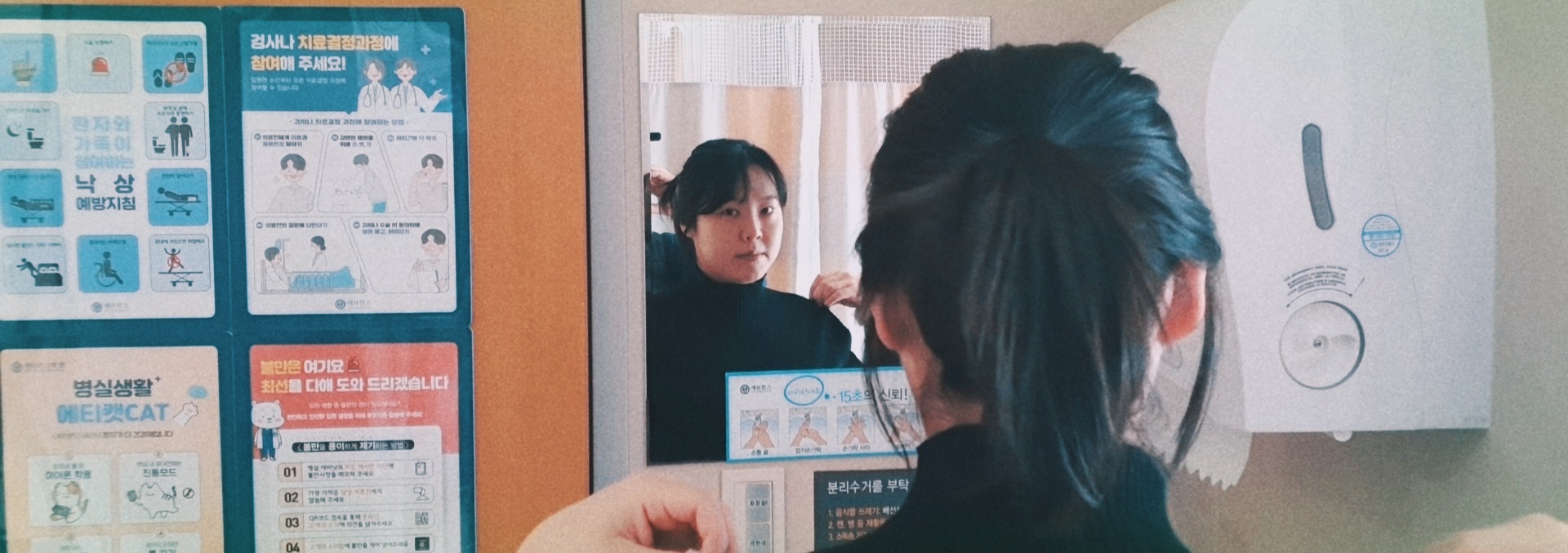 그래도 너의 어머니는 선천적으로 많이 건강한 사람이라 회복치가 참 빠르더구나. 다음날부터 몸에 걸쳐있는 선들을 대부분 뽑고 걸어 다니려 하는 모습에 안도감이 들었단다. 사진은 어머니가 이제 퇴원을 하려는 날 옷매무새 다듬는걸 찍었어.