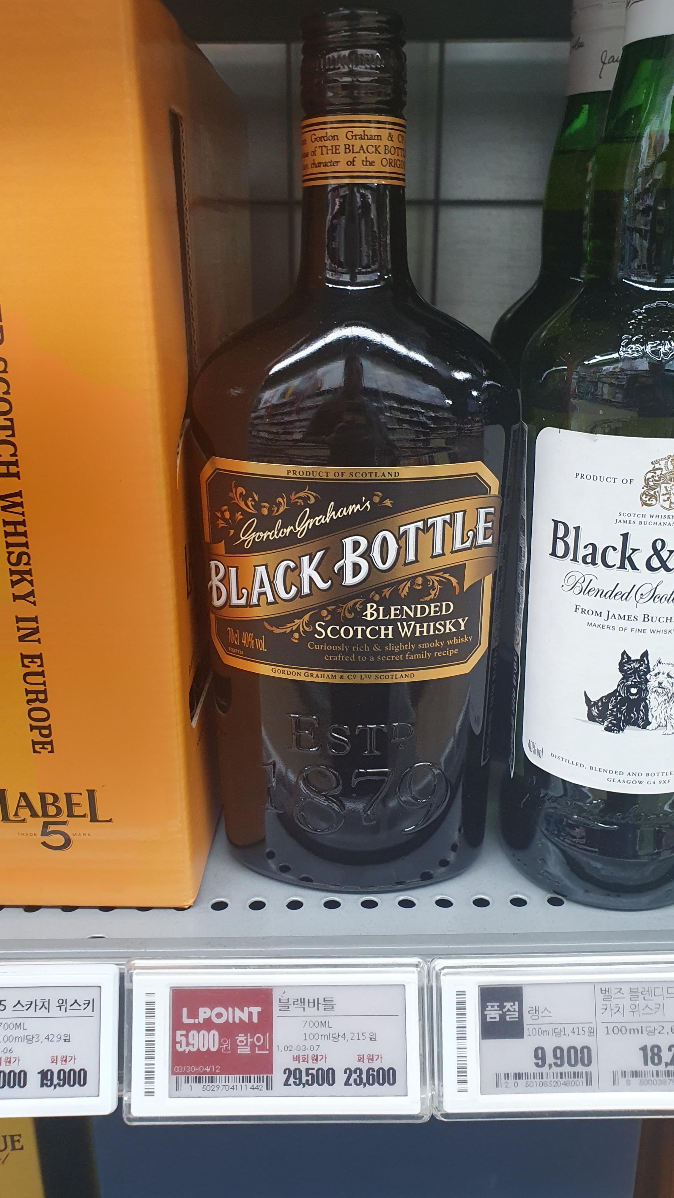 가난한 자들을 위한 가성비 피트 위스키로 유명한 블랙바틀. 역시나 명성답게 해당 제품의 품절이 자주 보여 20프로 정도 할인되는 가격인 2만 3천 원대 블랙바틀이 채워져 매대에 보이면 바로 픽업하시길!!