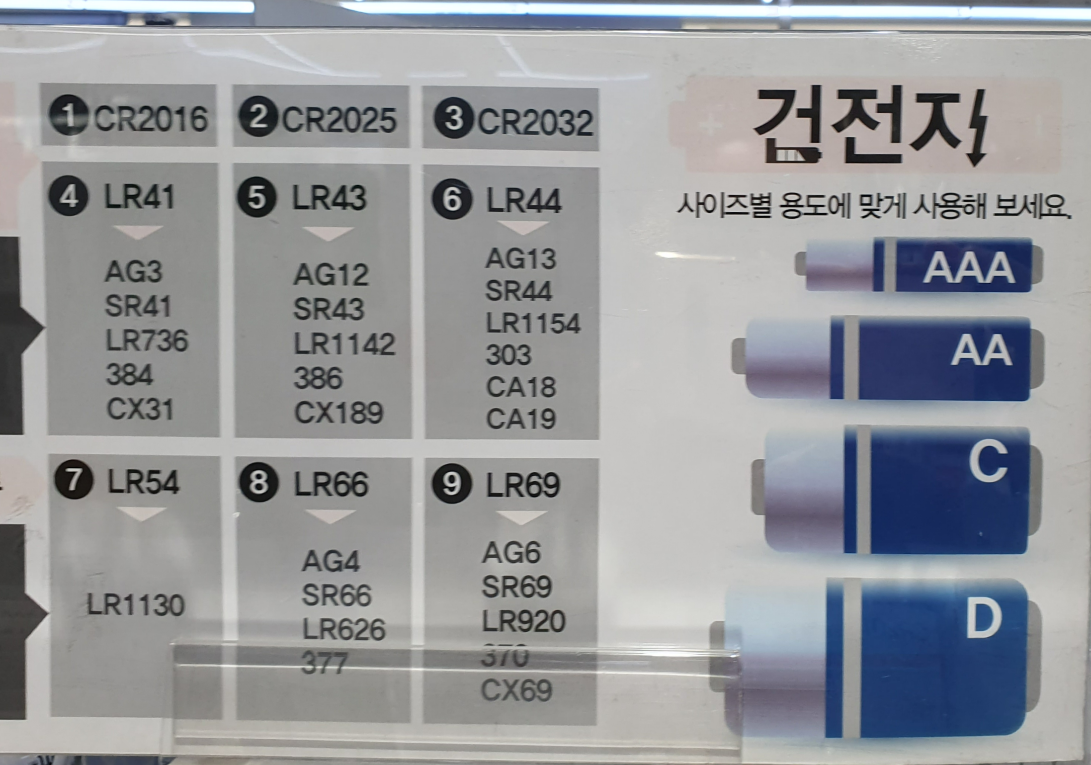 다이소에서 알려주는 버튼셀 / 일반 건전지 사이즈