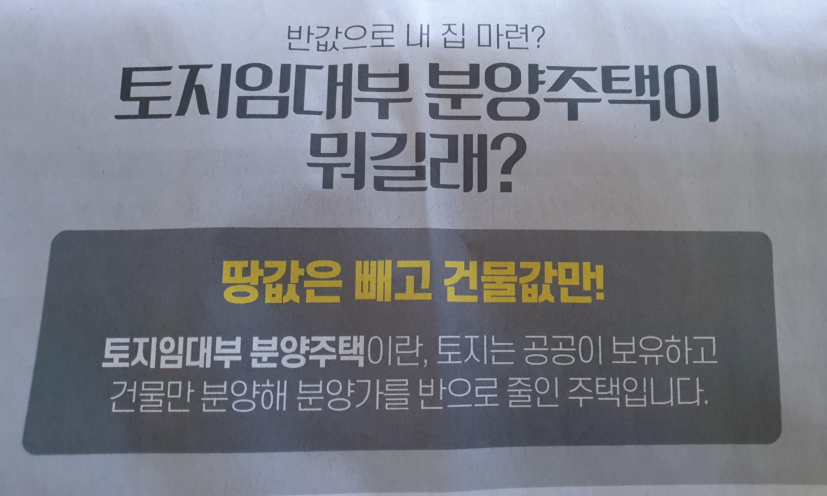 # 토지임대부 분양주택 : 땅값은 빼고 건물값만 지불하는 제도로서 토지는 공공이 보유하고 건물만 분양해 분양가를 반으로 줄인 주택입니다.