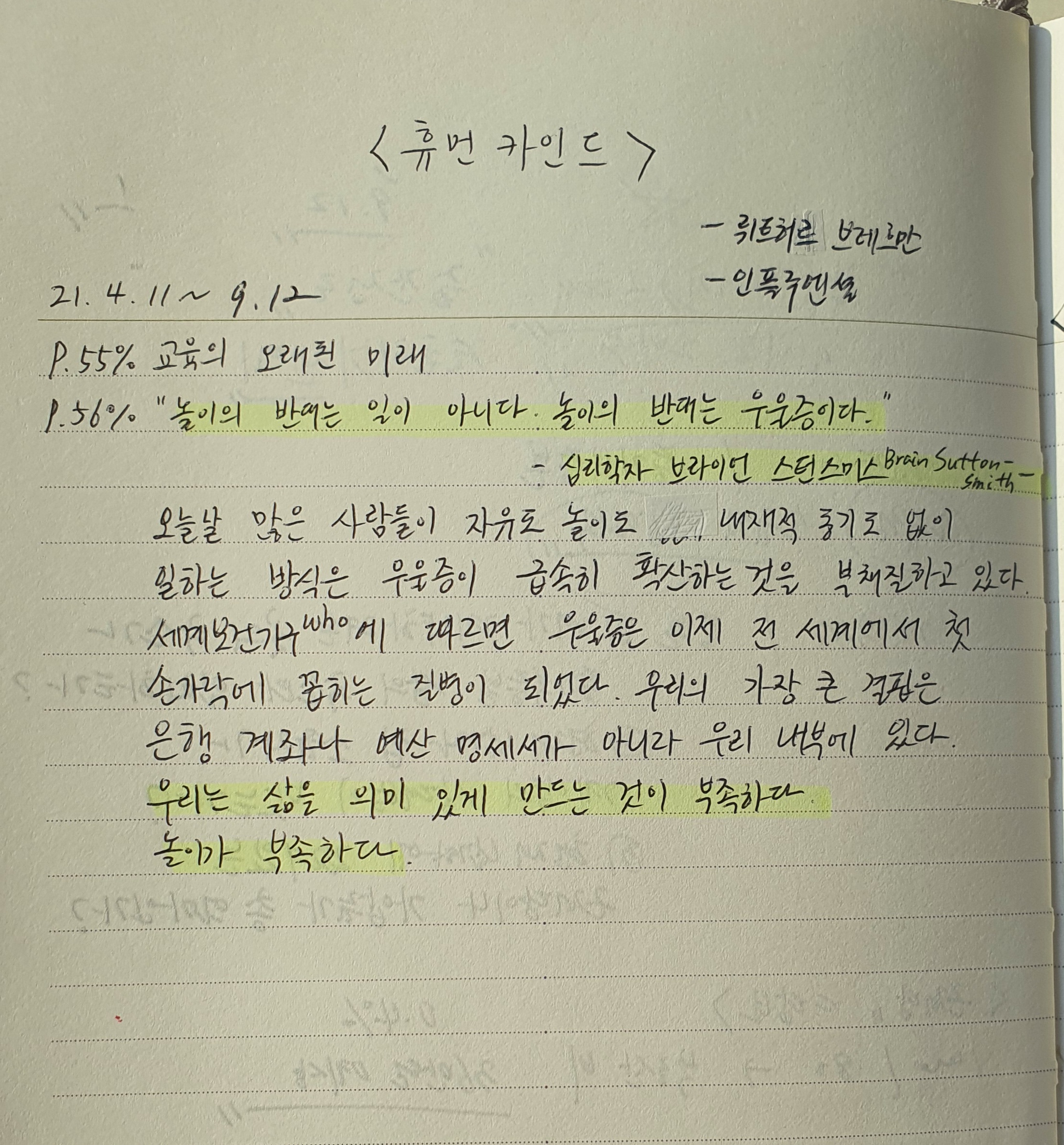 P.56% "놀이의 반대는 일이 아니다. 놀이의 반대는 우울증이다." -심리학자 브라이언 스턴스미스
