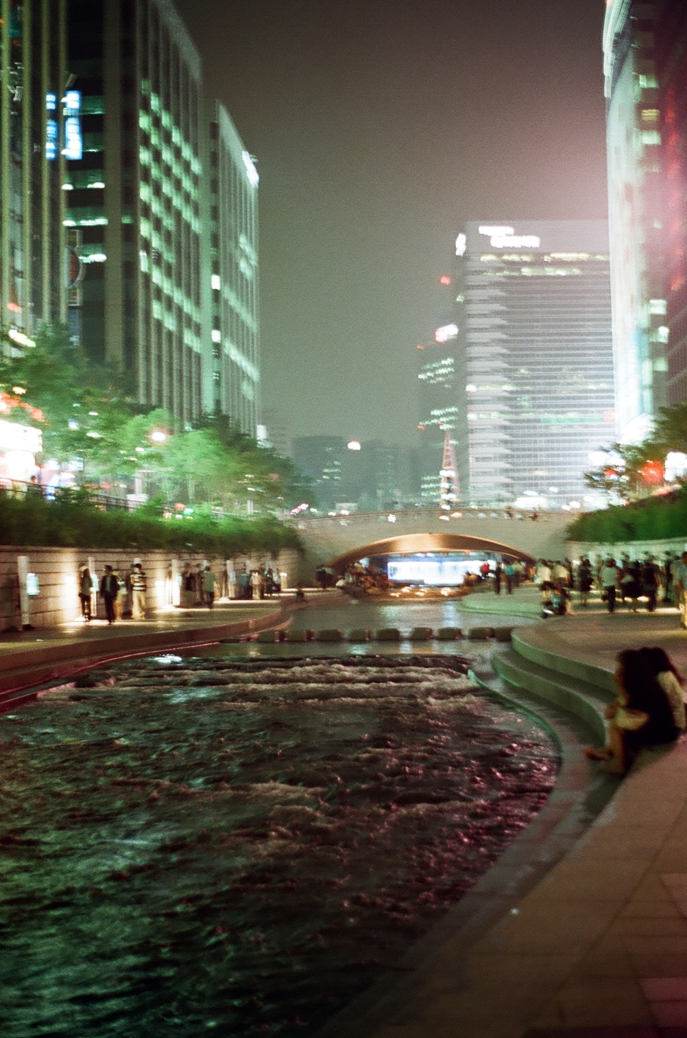 2010년, 청계천이 오픈되고 몇 년 안되었던 시기였다. 서울 도심 한복판에 이렇게 시원한 물이 흐른다는 것이 신기한 경험. 6월 여름철이기에 사람들의 동행도 많고 삼삼오오모여 이야기하는 모습들.