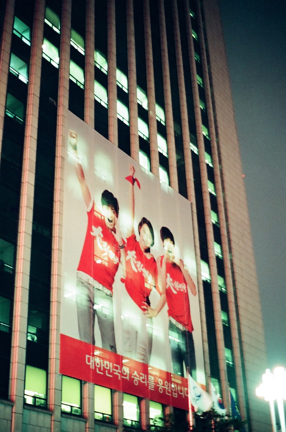 웬만한 건물에는 모두 빨간색 천에 한국 축구를 응원하는 문구가 가득하였던 그 시기.