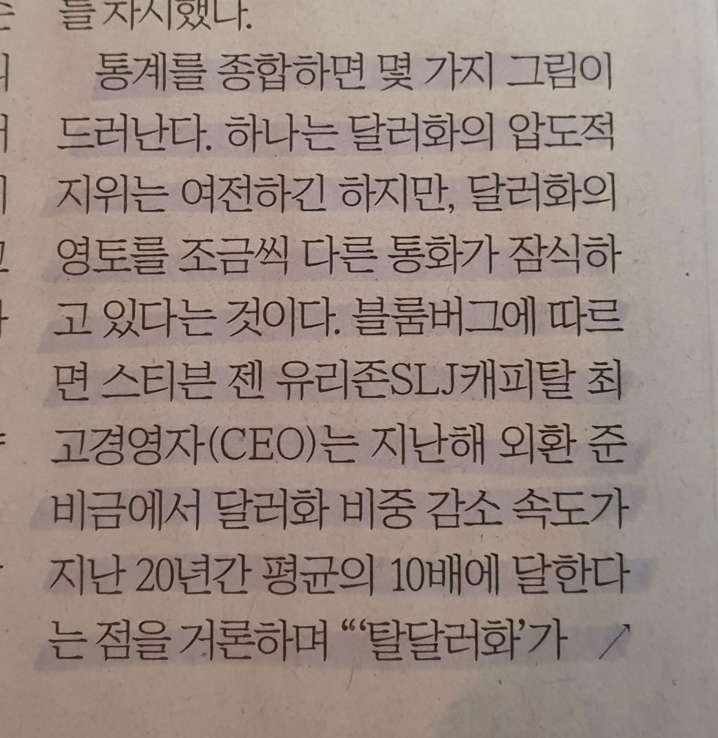 -달러와 비중 감소 속도가 지난 20년간 평균의 10배에 달한다 / 스티븐 젠 유리존 SLJ 캐피털 CEO