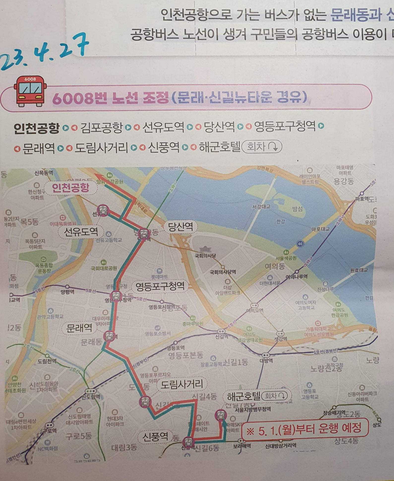 # 6008번 노선 조정 (문래/신길뉴타운 경유)
