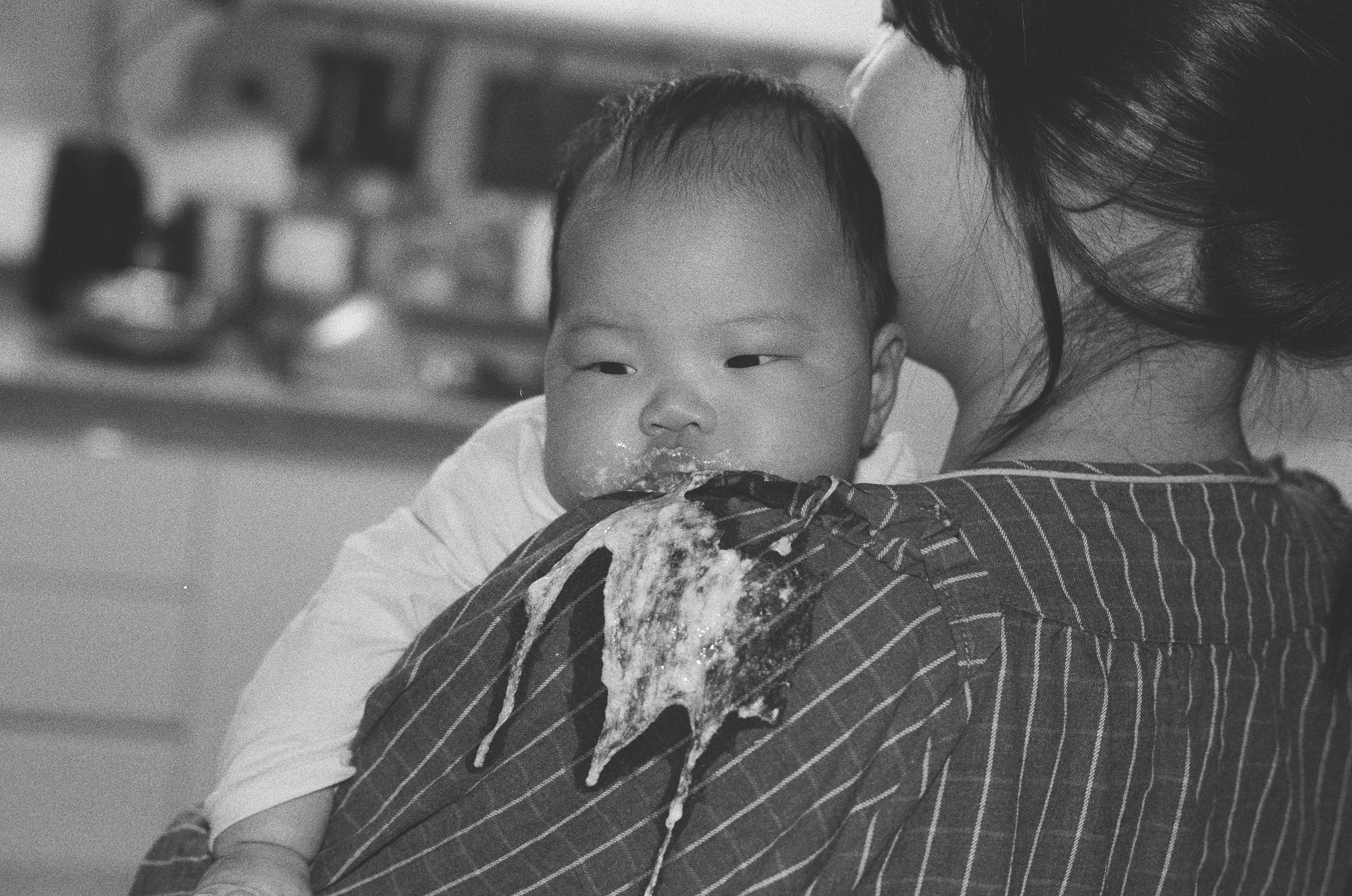 모유 먹고 왠지 토할 것 같은 예감에 싱크대에 달려가던 중 이미 사건이 발생된 상황.