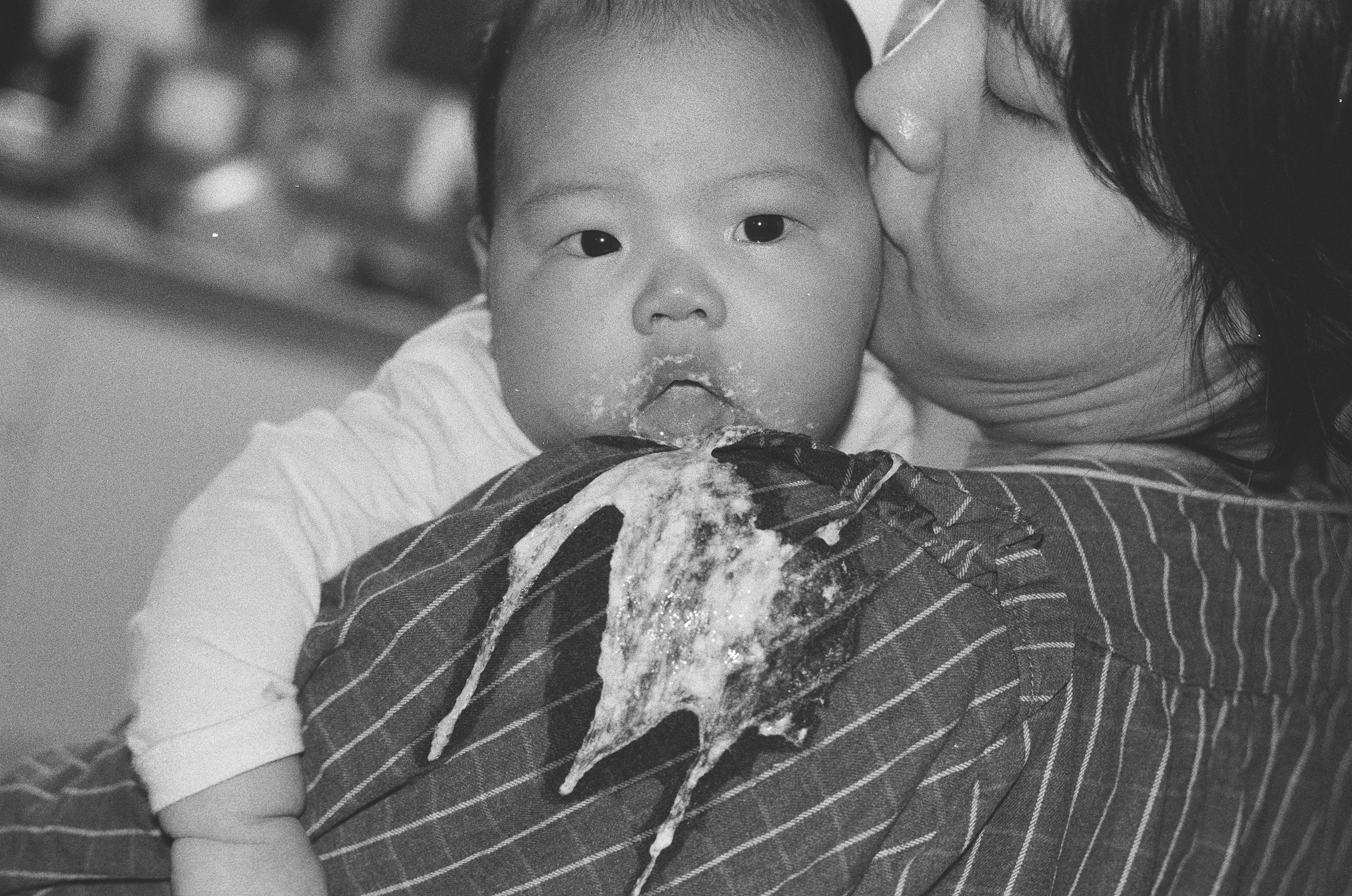엄마는 하루 이틀이 아니라서 그려려니 하더구나. 토한 딸이 여전히 사랑스러운지 뽀뽀해 주는 엄마.