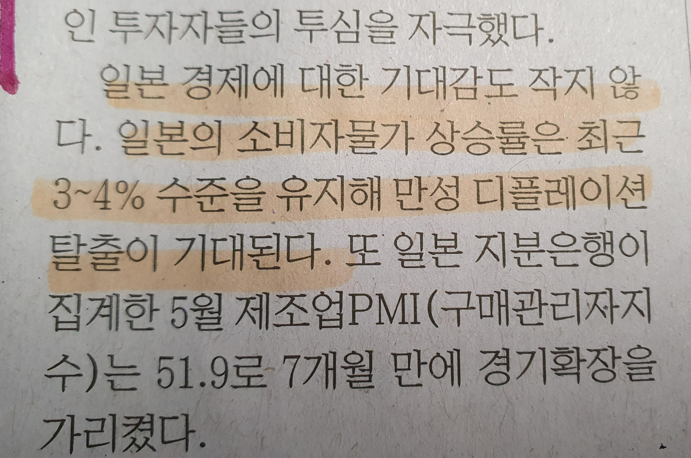 Comment)) 결국 포인트는 리스크 헷징이 현재로서는 아시아 지역에서 일본이 가장 안전한 편이라는 것과 지금까지 저평가받아온 시장에 대한 반영이라 할 수 있다. 무엇보다 역설적으로 지금까지 물가가 상승한다는 경험을 못해본 일반 일본인들 입장에서는 물가 상승으로 인하여 가계운영 힘들지만 국가적으로는 자본주의 시스템상 물가 상승이 국가에 대한 작동(?)에 대하여 긍정적 부분으로 외국인에게 받아들여진 것이 아닐까 싶다.