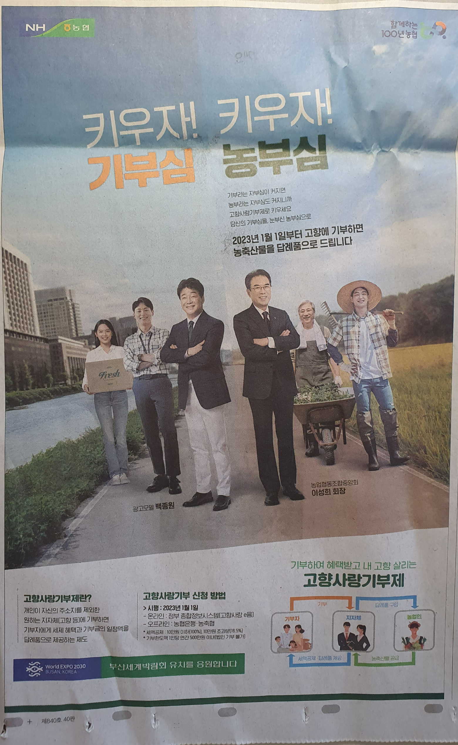 Comment)) 일본 지역 세수 및 농민들 살리기의 일환으로 시작한 제도로 정착이 잘되어 한국에서 벤치마킹을 하여 올해 1월1일 부터 시행중인 제도. 아직까지는 홍보가 많이 되지 않아 관련 영상을 보고 홍보차 포스팅