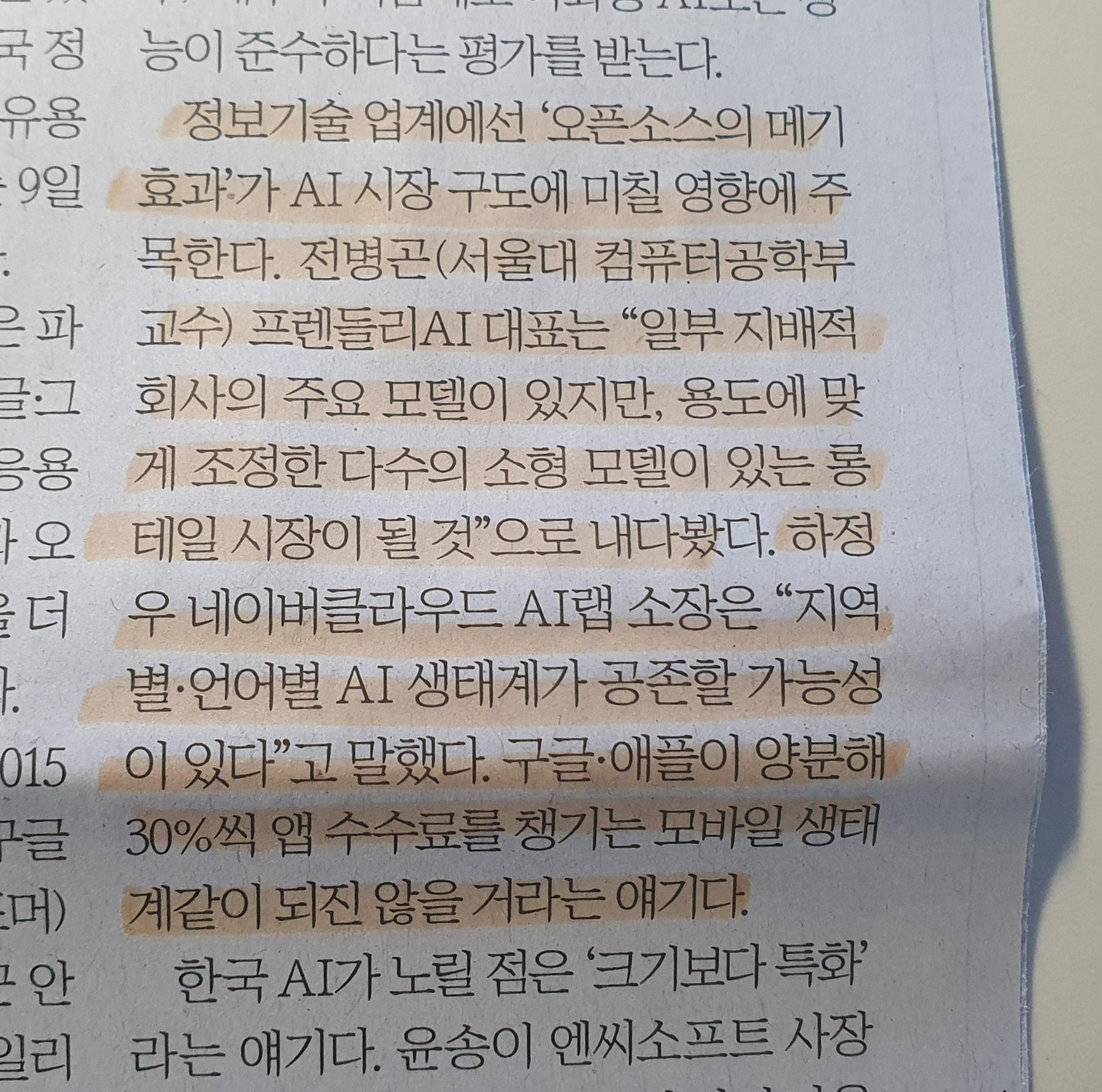 -지역별, 언어별 AI 생태계가 공존할 가능성이 있다. 현재의 어플리케이션 운영체제의 독점인 구글/애플과 같은 형태로 굳어지지는 않을 것으로 예상 / 하정우 (네이버클라우드 AI랩 소장님)