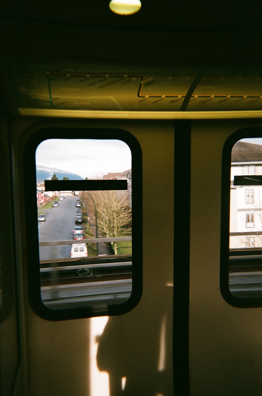 밴쿠버 지하철 풍경, 우리나라의 2호선처럼 지상으로 운행하는 구간이 많은데 미국 같기도 유럽 같기도 한국과는 다른 이국적인 모습에 눈이 끌렸다.